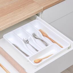 Лоток для столовых приборов раздвижной, цвет белый