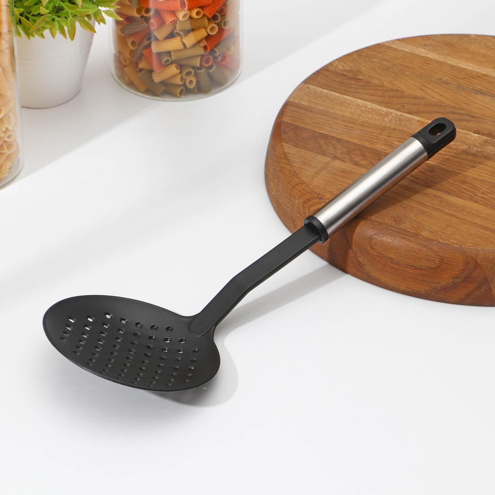 Шумовка — отличный и практичный помощник на любой кухне. Используется для быстрого извлечения из горячей воды макаронных изделий, пельменей, вареников и овощей, а также для удаления пены с супа. Столовый прибор не впитывает запахов и вкуса продуктов, поэтому он отличается универсальностью.