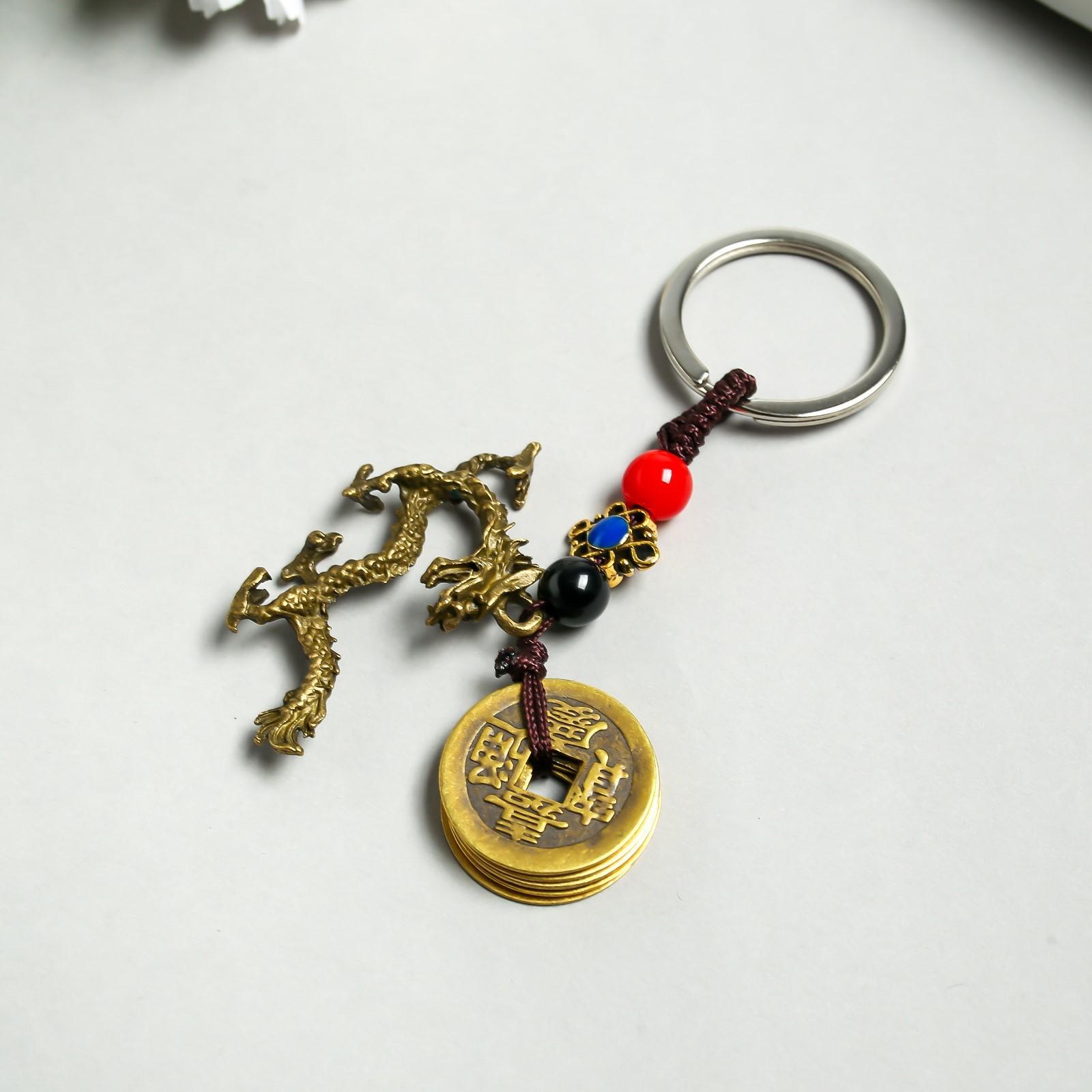 Брелок металл нэцке "Китайский дракон" 5 монет h=7,5 см
