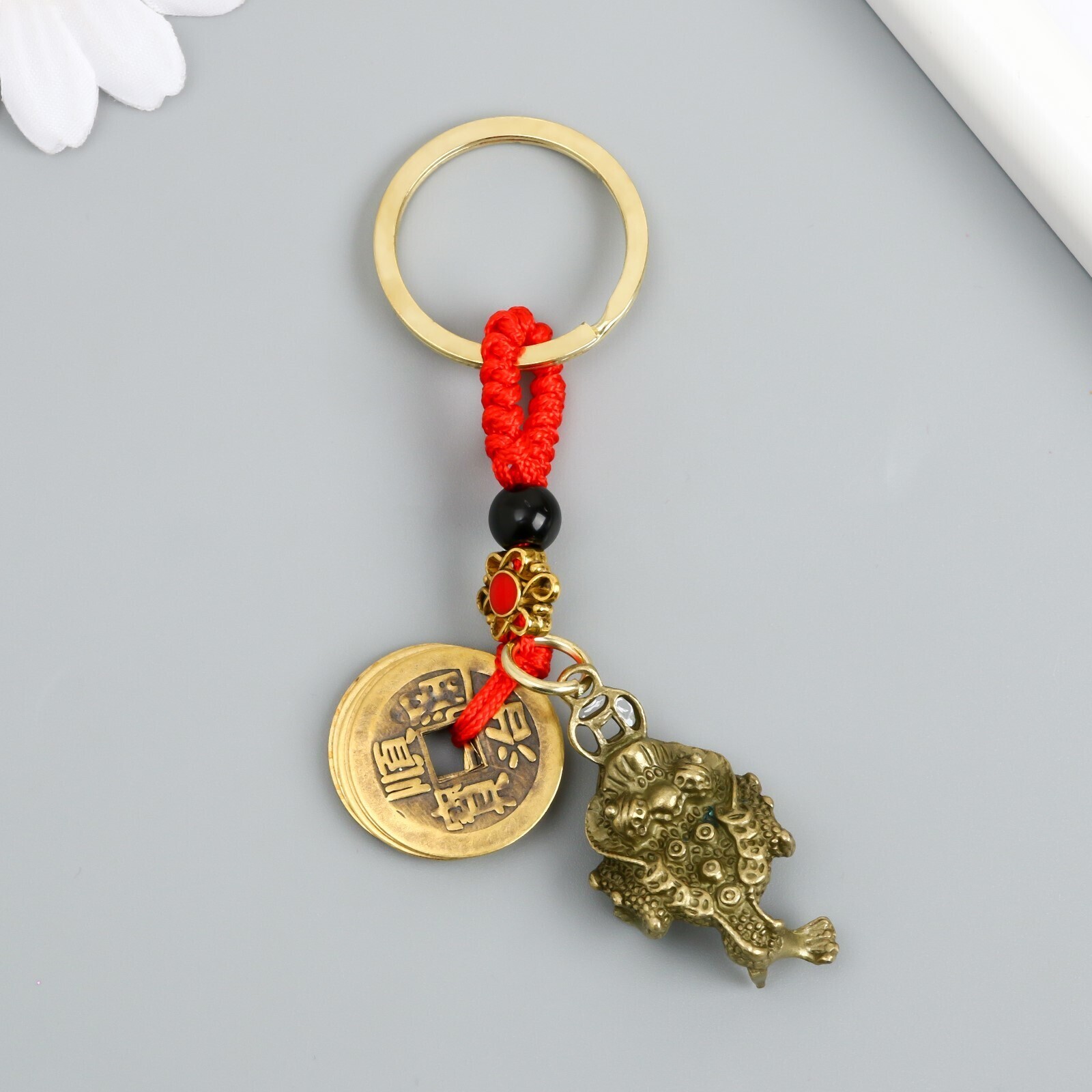 Брелок металл нэцке "Денежная жаба" 5 монет h=10 см