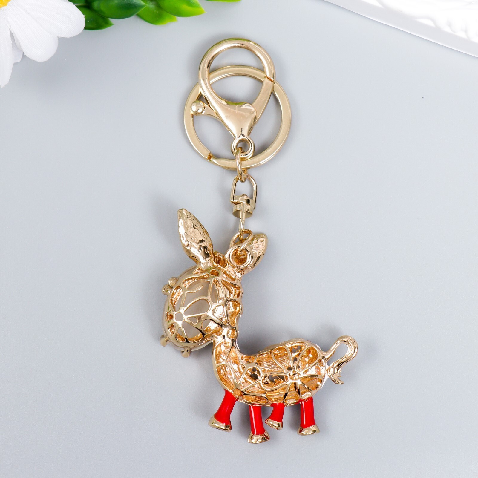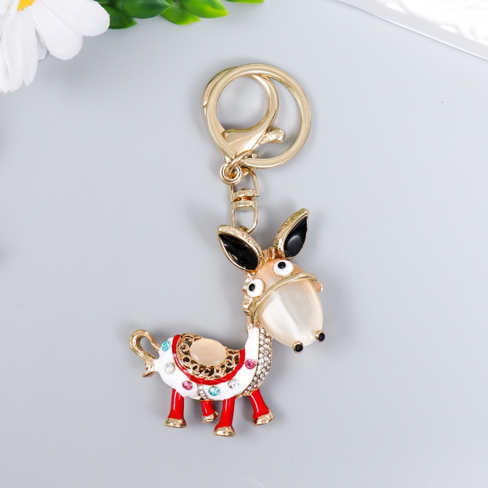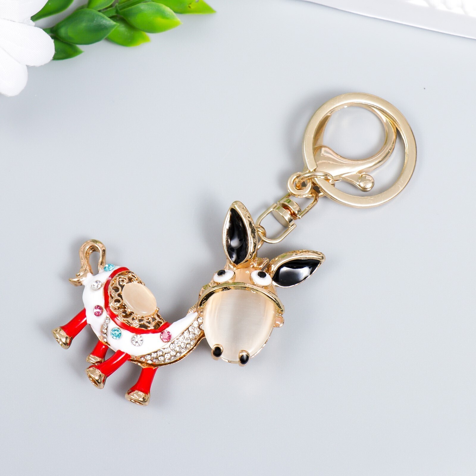 Брелок металл с карабином, эмаль, стразы "Ослик" 12х5 см