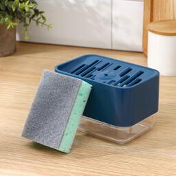 Дозатор для моющего средства с подставкой для губки Raccoon, губка в комплекте, цвет синий