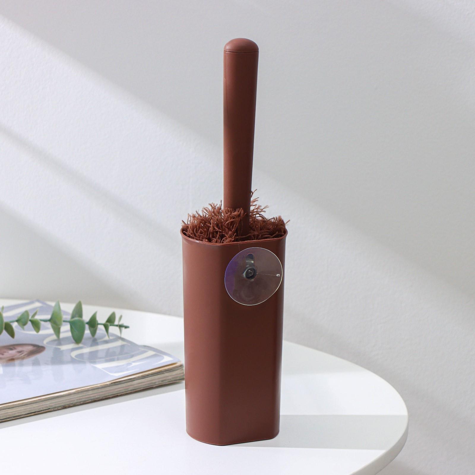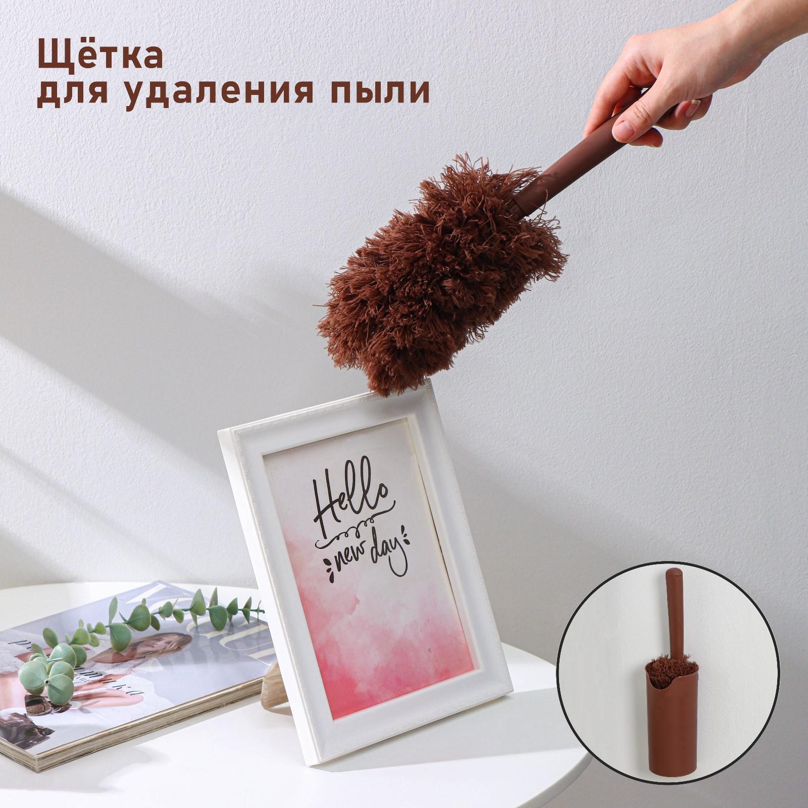 Щётка для удаления пыли Доляна «Антистатик», 29 см, с подставкой на присоске, микрофибра, цвет коричневый