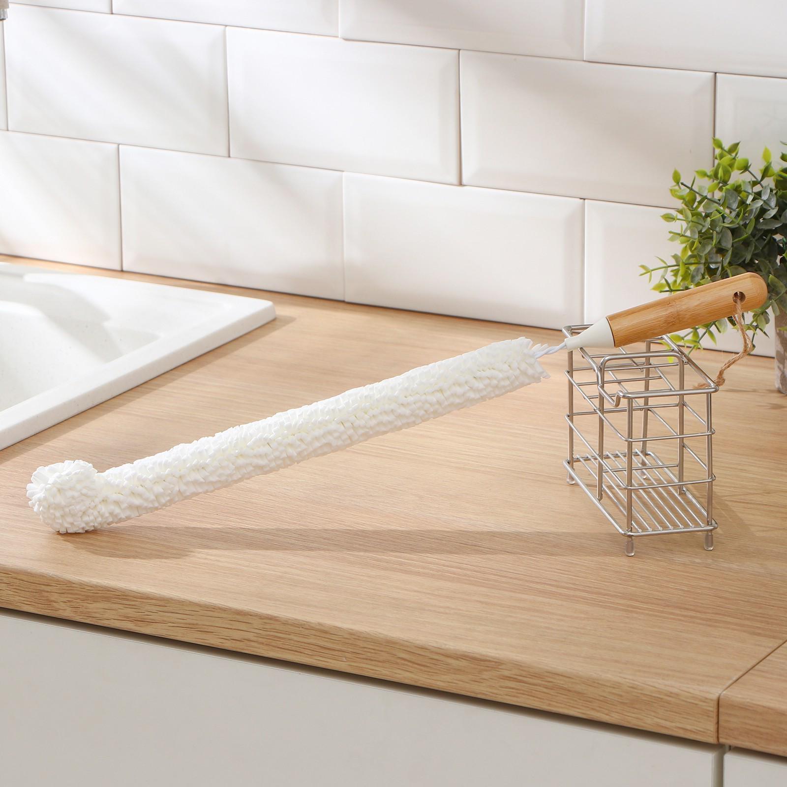 Вам поможет ёршик для мытья посуды! Благодаря длинной ручке вы без труда очистите каждый сантиметр тары.