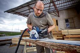 Режим работы ''ECO'' позволяет продлить количество пропилов на одном заряде аккумулятора. Блокировка шпинделя обеспечивает легкую смену оснастки, а блокировка кнопки включения предотвращает случайный запуск двигателя. Удобная регулировка глубины пропила позволяет подобрать оптимальные настройки для работы. Полная совместимость с направляющими FSN для точного прямого реза, также совместима с направляющими других производителей. GKS 18V-68 GC входит в аккумуляторную семью Bosch Professional 18В и совместима со всеми аккумуляторами из данной линейки.
