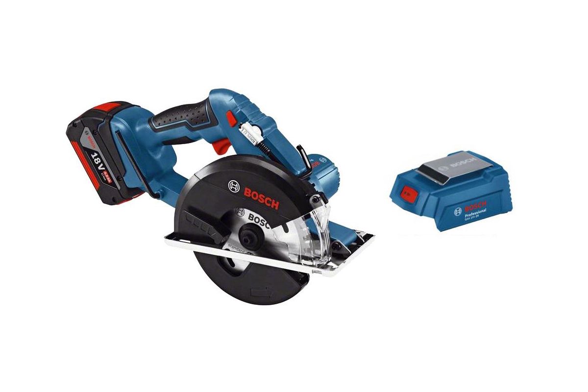 В состав набора входят: Пила циркулярная BOSCH GKM 18 V-LI (0.601.6A4.000) 18В 4.0Ач 4250об/мин пропил 50мм посадка 20мм ди, Адаптер BOSCH GAA 18V-24 USBx2 (2x2.4A или 2 x 1.2A) Порт для куртки с подогревом