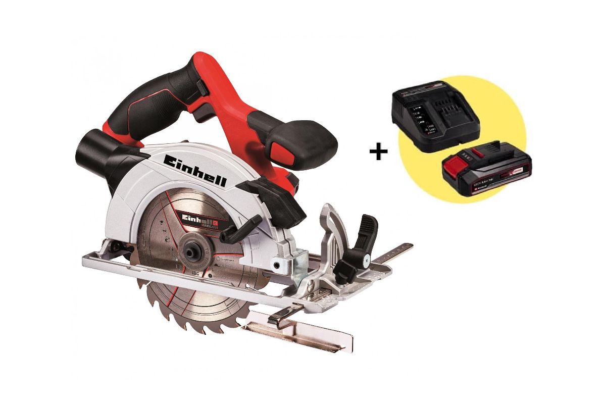 В состав набора входят: Пила циркулярная аккумуляторная Einhell PXC TE-CS 18/165-1 Li-Solo (4331207), Комплект Einhell 18V 2,5Ah PXC Starter Kit (4512097) Устройство зарядное + аккумулятор