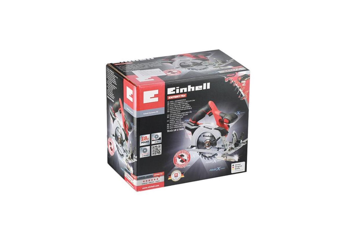 Пила циркулярная аккумуляторная Einhell PXC PXC TE-CS 18 Li-Solo поставляется без аккумулятора и зарядного устройства. Циркулярная пила является представителем семейства Power X-Change, а значит совместим со