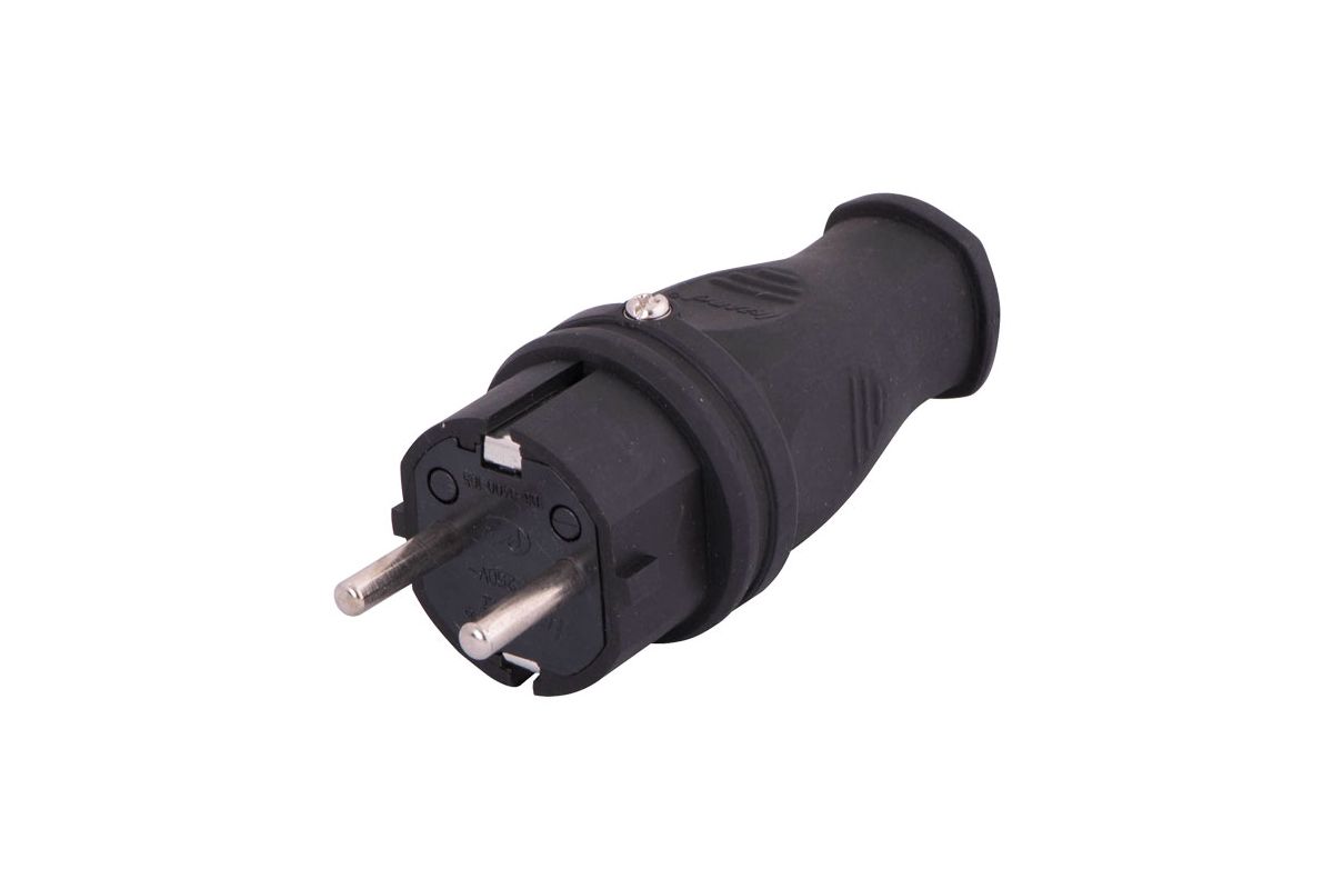 Электрическая вилка, выполненная из из каучука. Имеет степень защиты от пыли и влаги IP44. Данное изделие предназначено для подключения электроприборов и оборудования к однофазной электросети напряжением до 250 В/50 Гц, а также для изготовления и ремонта сетевых удлинителей.