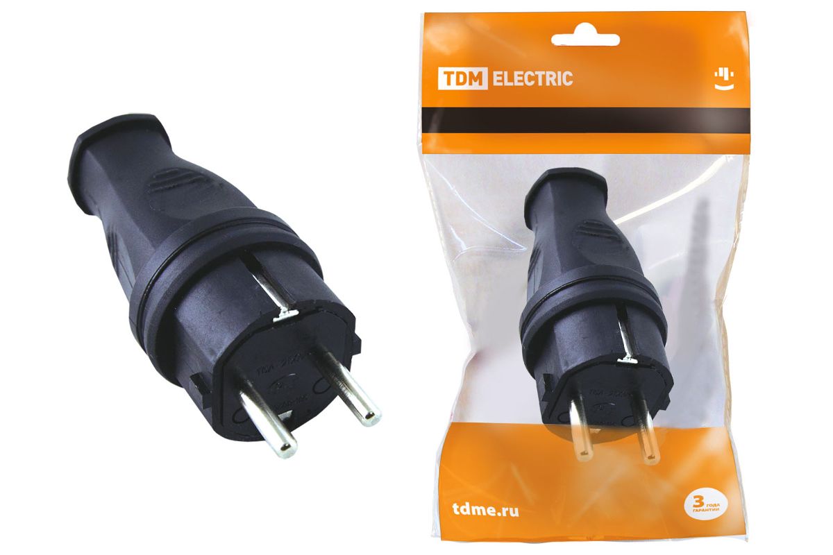 Вилка TDM SQ0612-0001 прямая каучук 2р+ре 16А 250В IP44