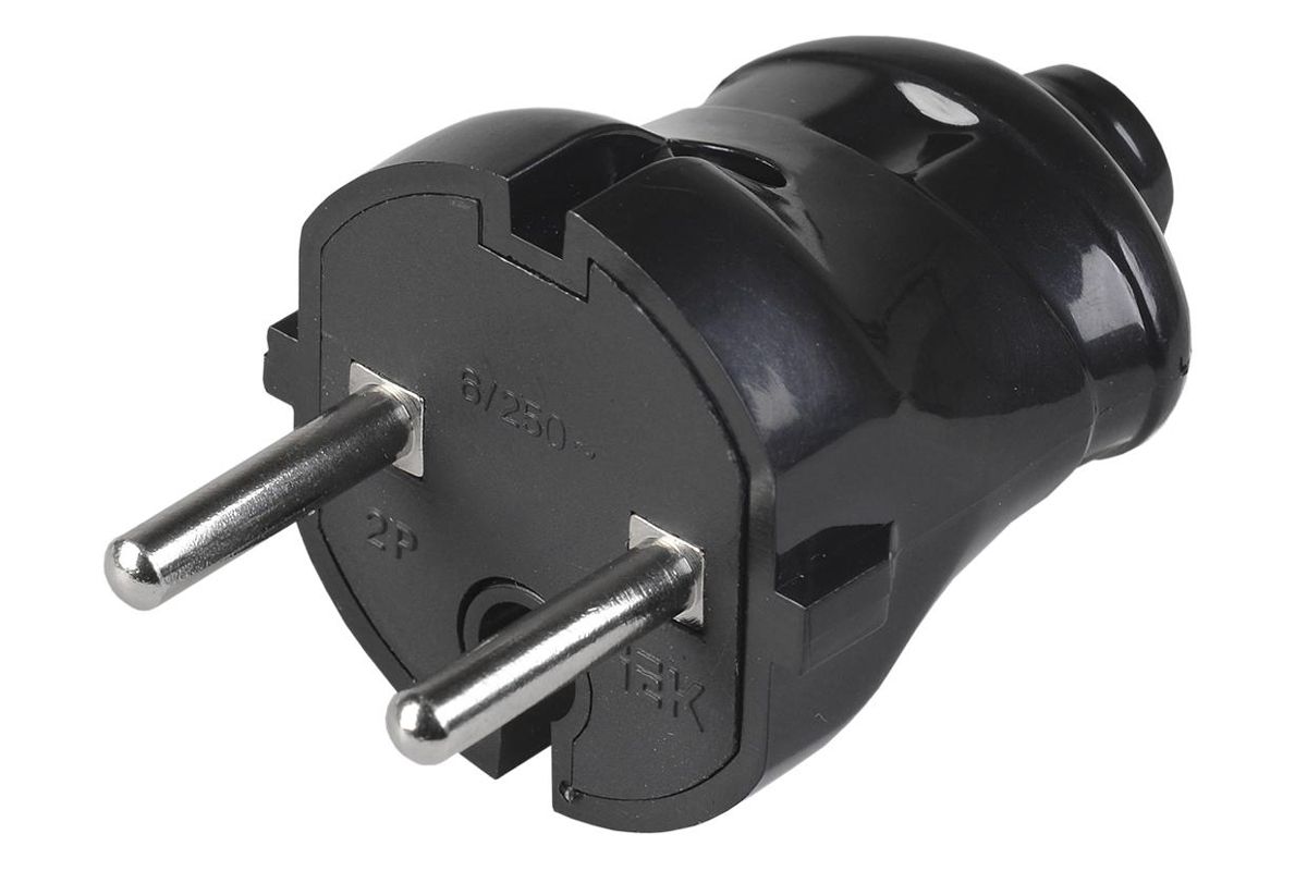 Вилка прямая ВПп20-02-Ст разборная без заземл. контакта 6А черн. IEK EVP20-06-01-K02