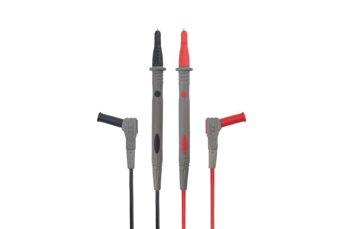 Клеммы, провода и ручки щупов надежно изолированы от поражения электротоком. Для удобства работы металлические концы щупов заострены.