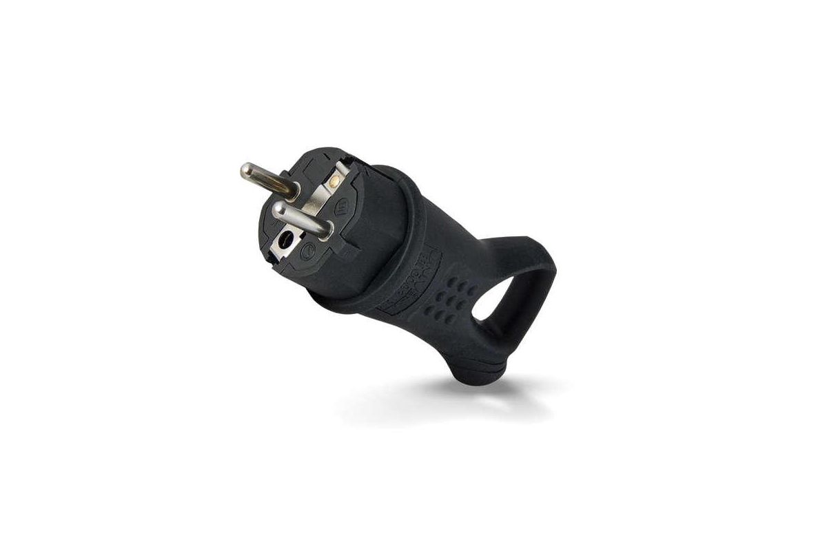Электрическая вилка, выполненная из из каучука. Имеет степень защиты от пыли и влаги IP44. Данное изделие предназначено для подключения электроприборов и оборудования к однофазной электросети напряжением до 250 В/50 Гц, а также для изготовления и ремонта сетевых удлинителей.