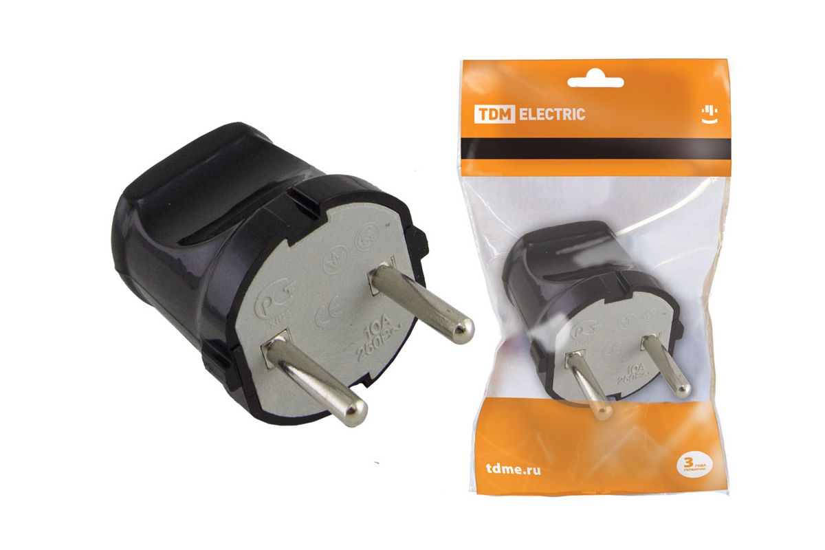 Вилка TDM SQ1806-0002 б/з черная 6А 250В