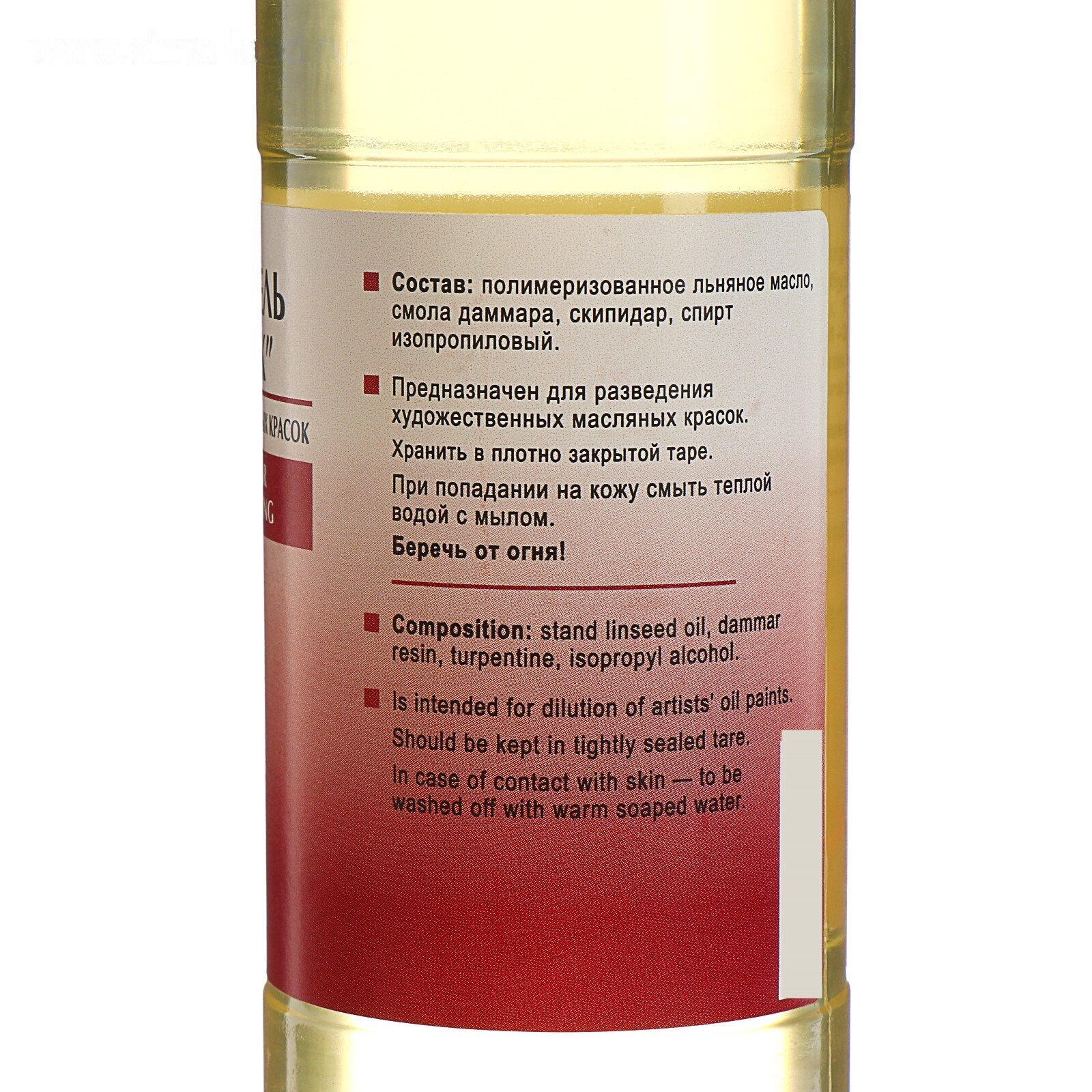 Разбавитель "Тройник" Невская палитра. Предназначен для разведения художественных масляных красок. Состав: полимеризованное льняное масло, лак даммарный, скипидар. Объем: 120 мл и 220 мл.