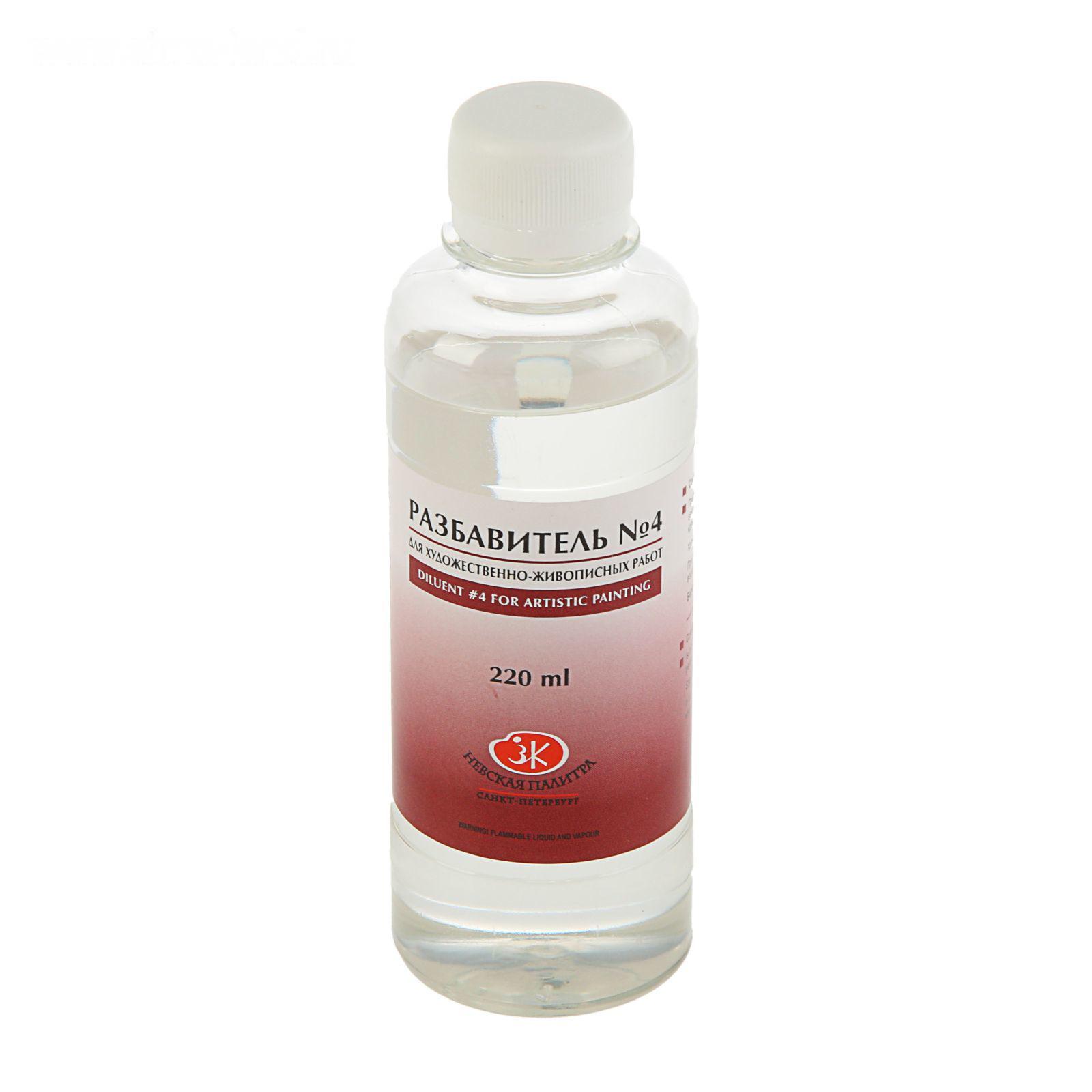 Разбавитель №4 Пинен "Невская палитра". Предназначен для разведения художественных масляных, пентамасляных, алкидных красок и разбавления лаков. Состав: пиненовая фракция живичного скипидара. Объем: 120 мл и 220 мл.