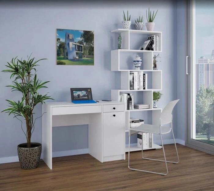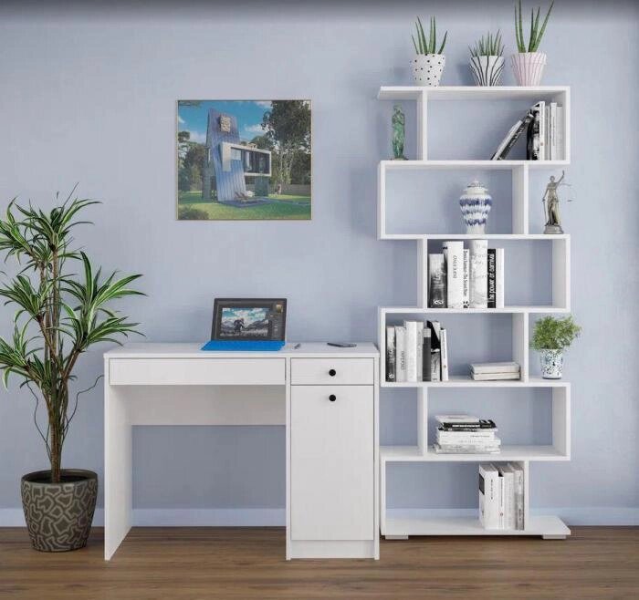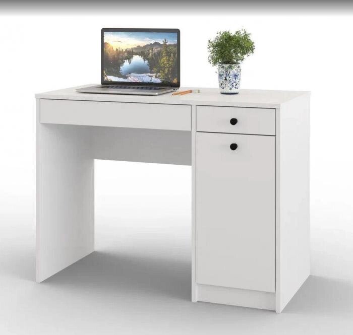Стол письменный для школьника МЕБЕЛЬ-КОМПЛЕКС Найс 2 белый с выдвижным ящиком и тумбой для ноутбука студента