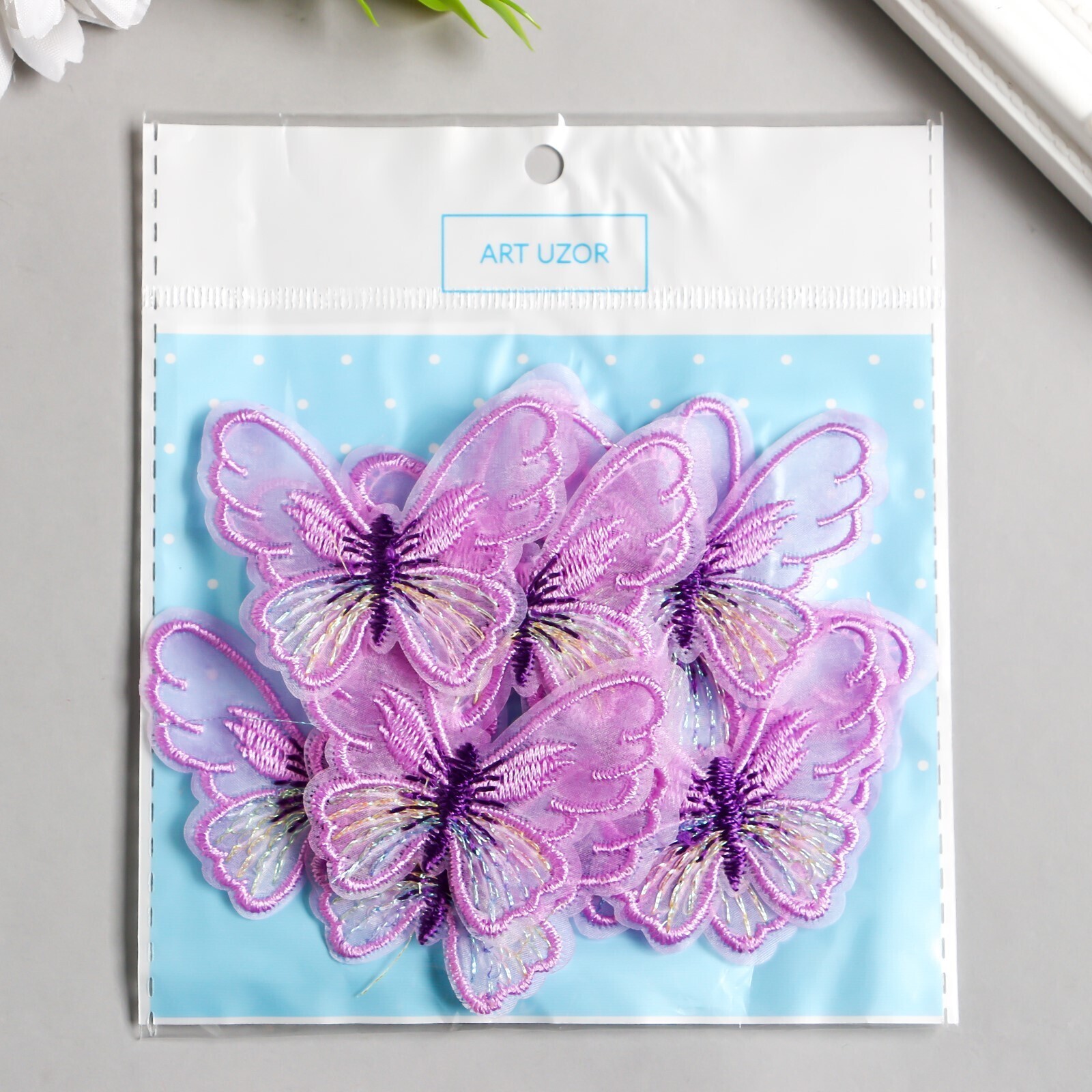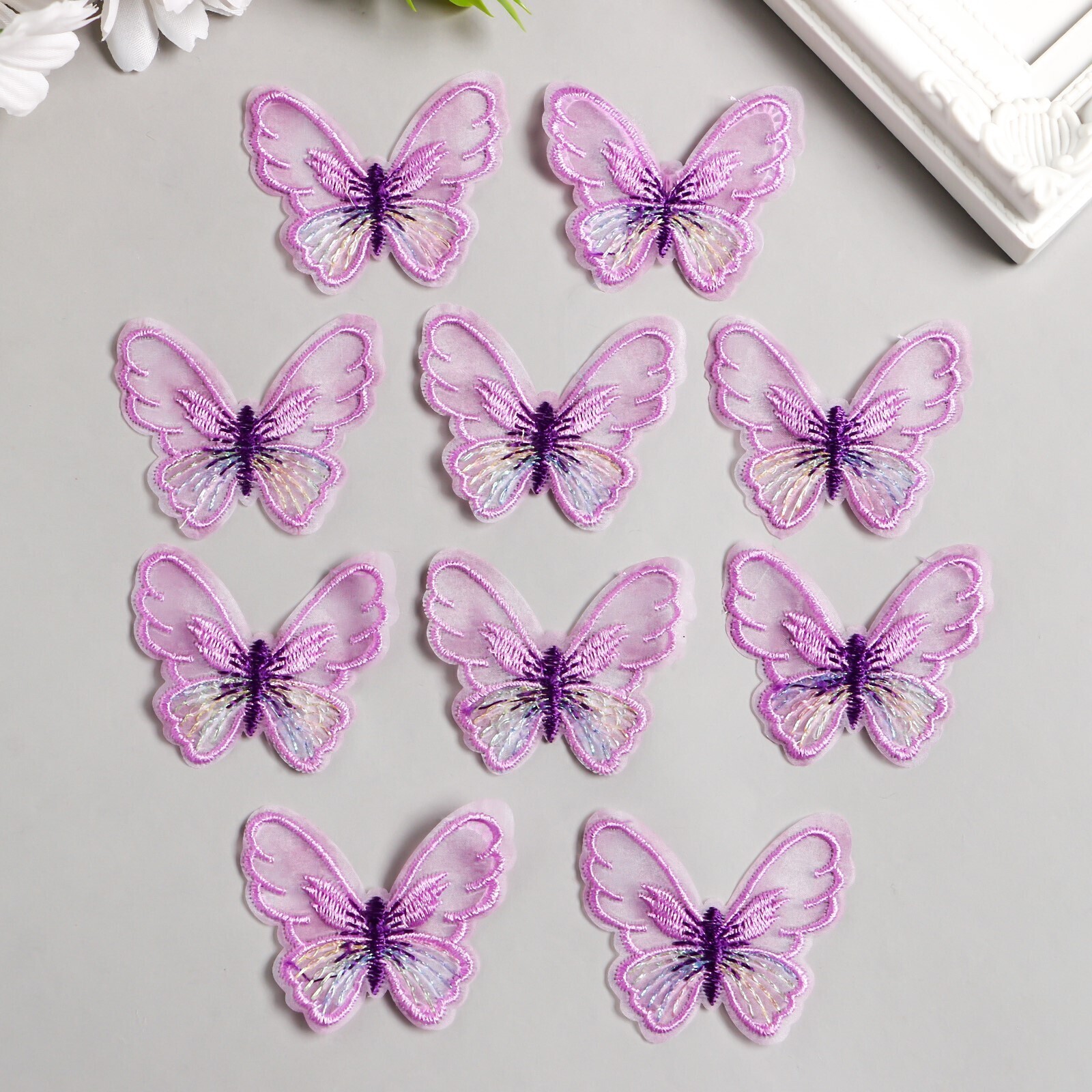 Декор для творчества текстиль вышивка "Бабочка сиреневая" 4,7х5,5 см