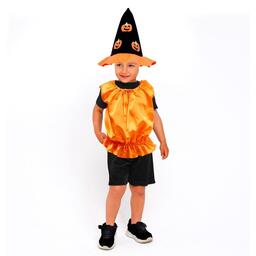 Карнавальный костюм Тыква,жилет,шляпа черно-оранжевая,рост 98-110