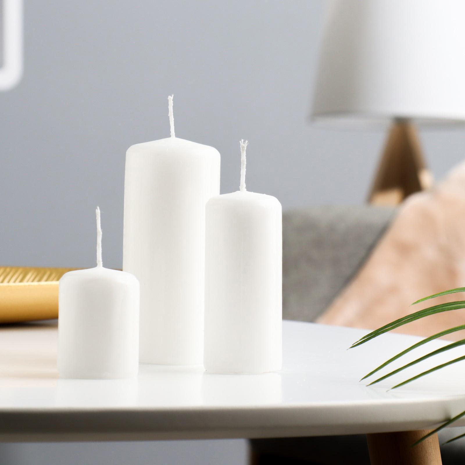 Набор свечей - цилиндров, набор 3 шт, белая (4х5 см, 4х9 см, 5х11,5 см)