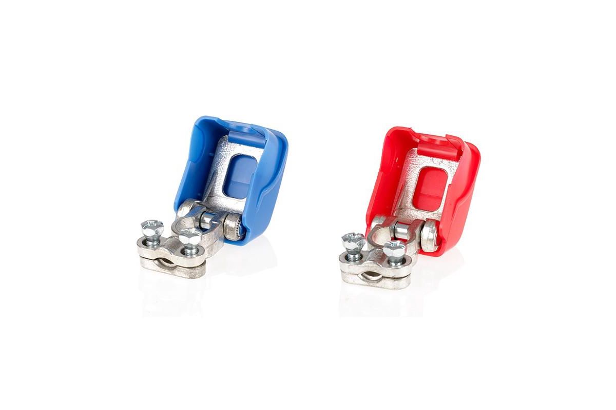 Аккумуляторные клеммы 2шт, быстросъёмные. Высокая антикоррозийная защита благодаря высококачественному покрытию. Для кабеля до 50 мм2. До 1000 А. Материал: луженая латунь, сталь и пластик. Вес: 300 гр.