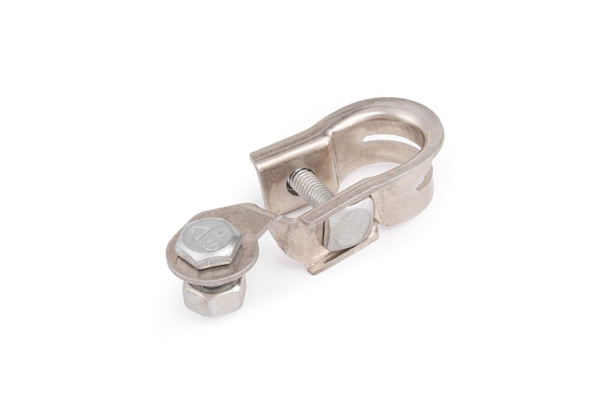Универсальная усиленная клемма аккумулятора изготовлена из специально свинцового сплава. Крепление жилы с помощью металлической планки.