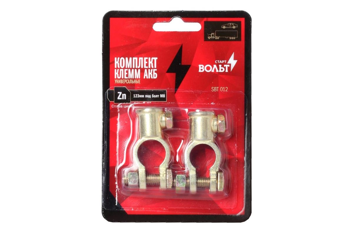 Клеммы АКБ СТАРТВОЛЬТ SBT 012 к-т сплав цинка 123мм под болт М8
