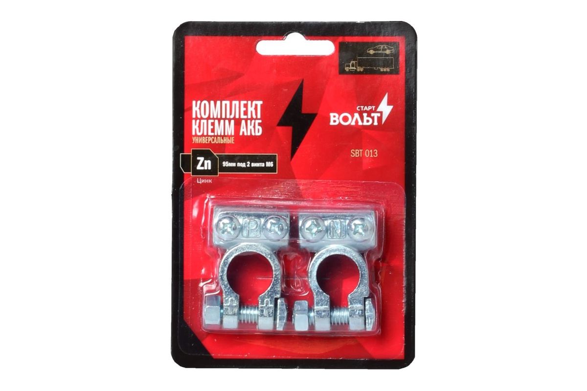 Клеммы АКБ СТАРТВОЛЬТ SBT 013 к-т цинк 95мм под 2 винта М6