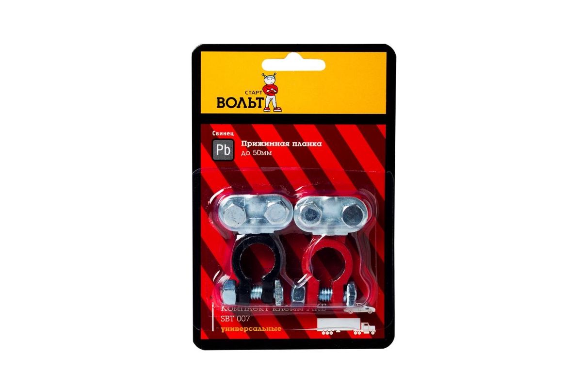 Клеммы АКБ СТАРТВОЛЬТ SBT 007 к-т свинец прижимная планка до 50мм Комплект клемм АКБ свинец, прижимная планка до 50 мм (SBT 007)