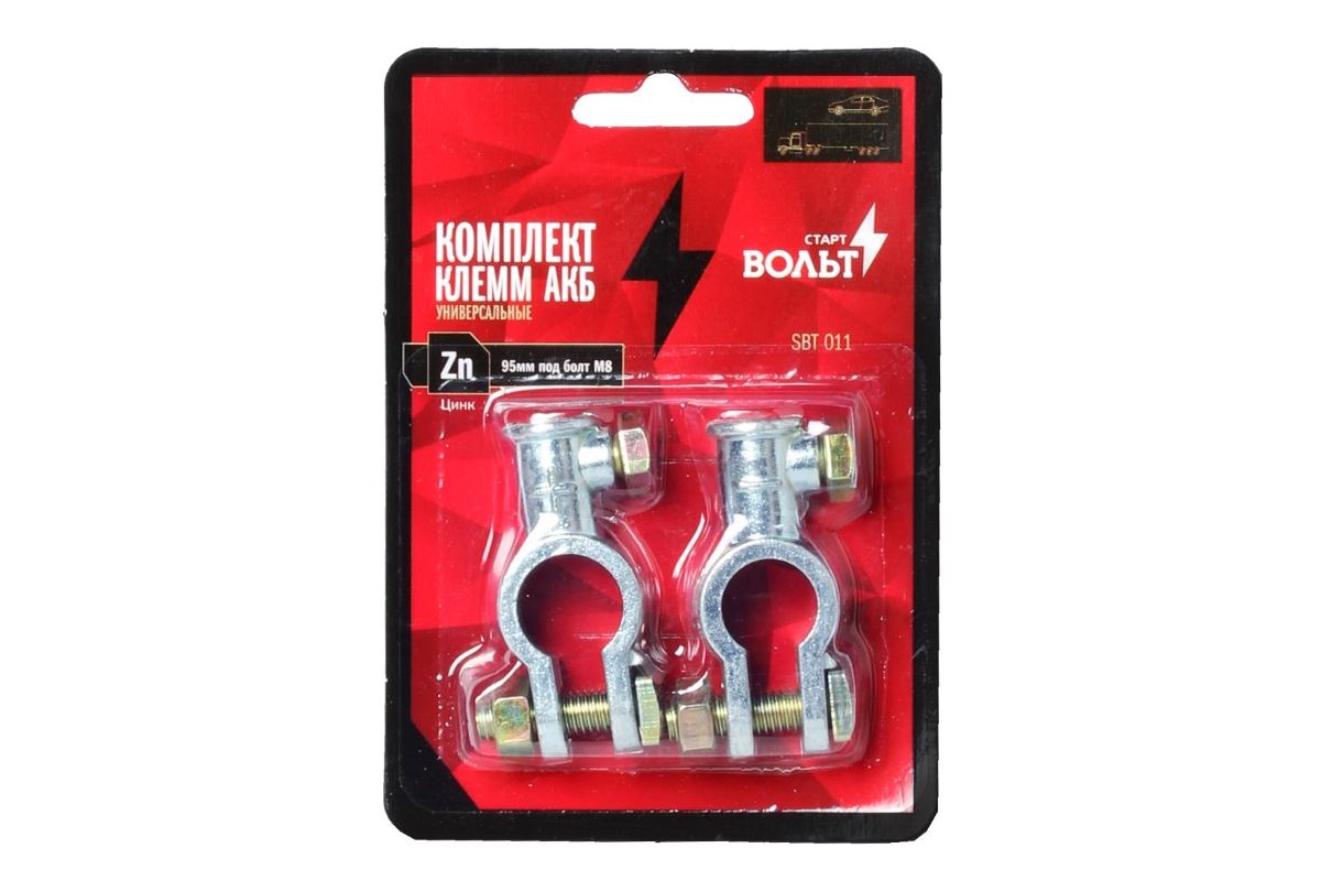 Клеммы АКБ СТАРТВОЛЬТ SBT 011 к-т цинк 95мм под болт М8