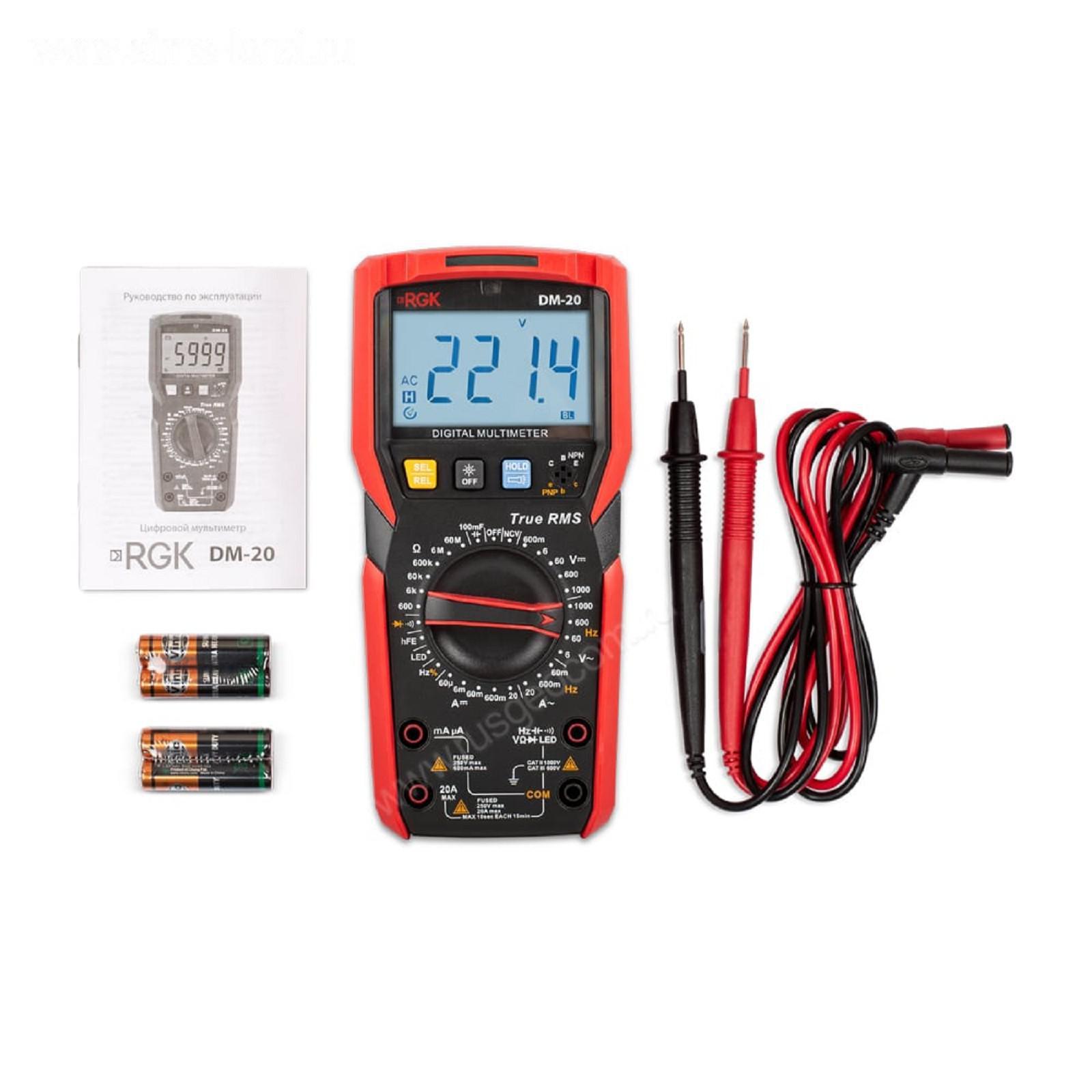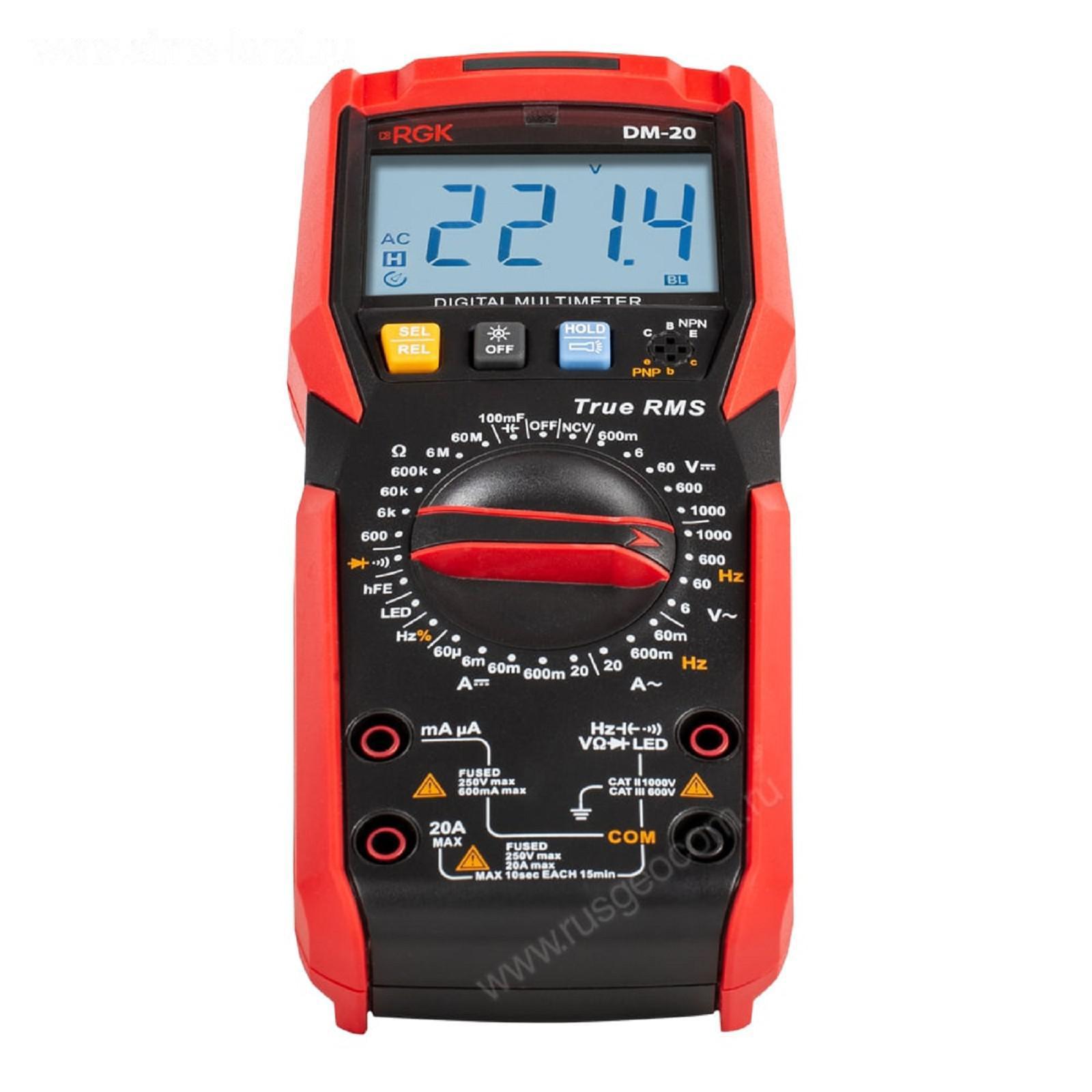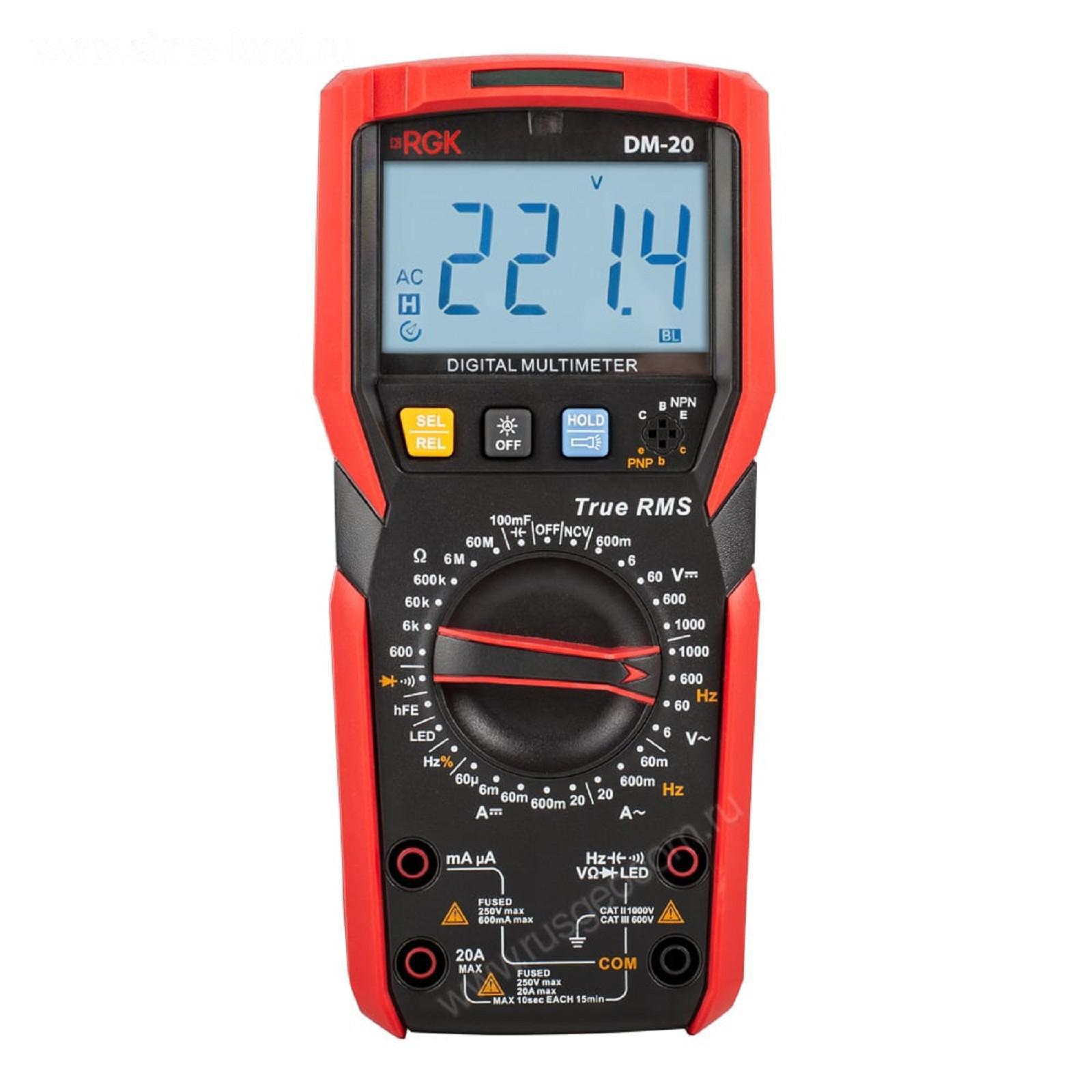 Мультиметр цифровой RGK DM-20 776455, 1000 В, 600 Ом - 60 Мом, 20А
