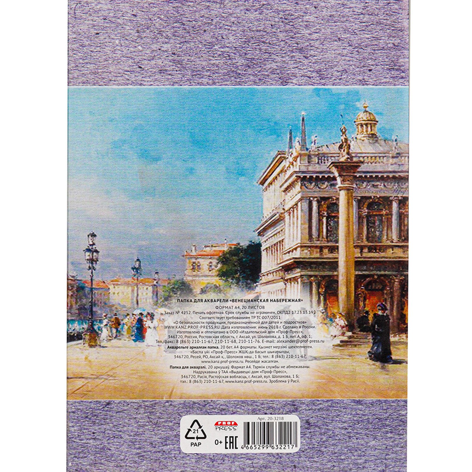 Папка для акварели Prof-Press Венецианская набережная А4 20 листов 200г/м2 20-3218