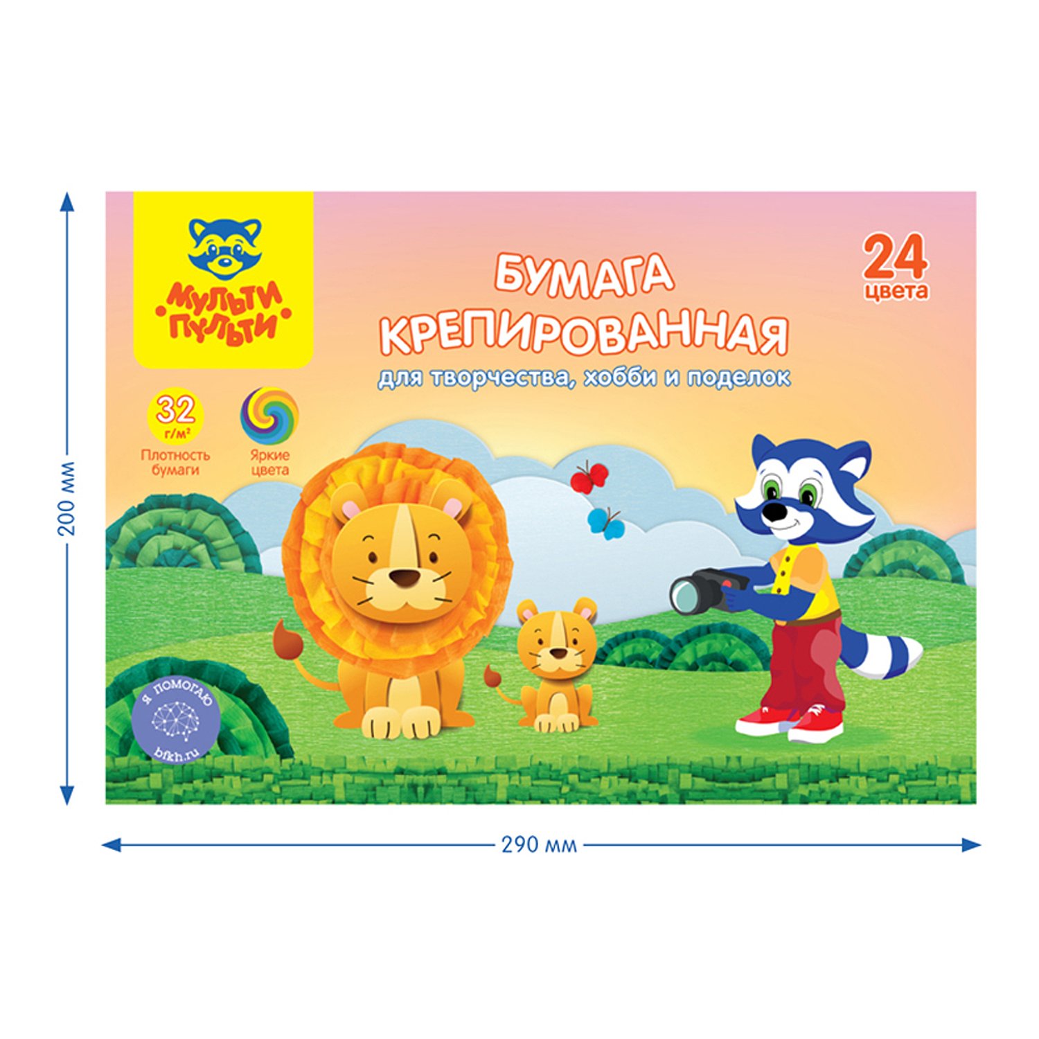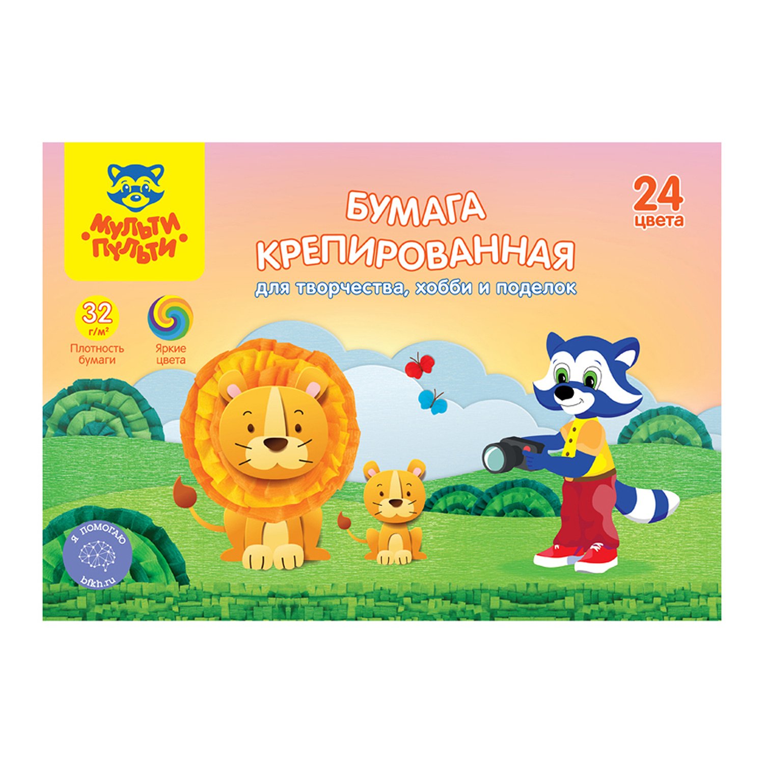 Набор крепированной бумаги МУЛЬТИ-ПУЛЬТИ А4 32г/м2 24 листа 24 цвета ассорти на склейке 315435