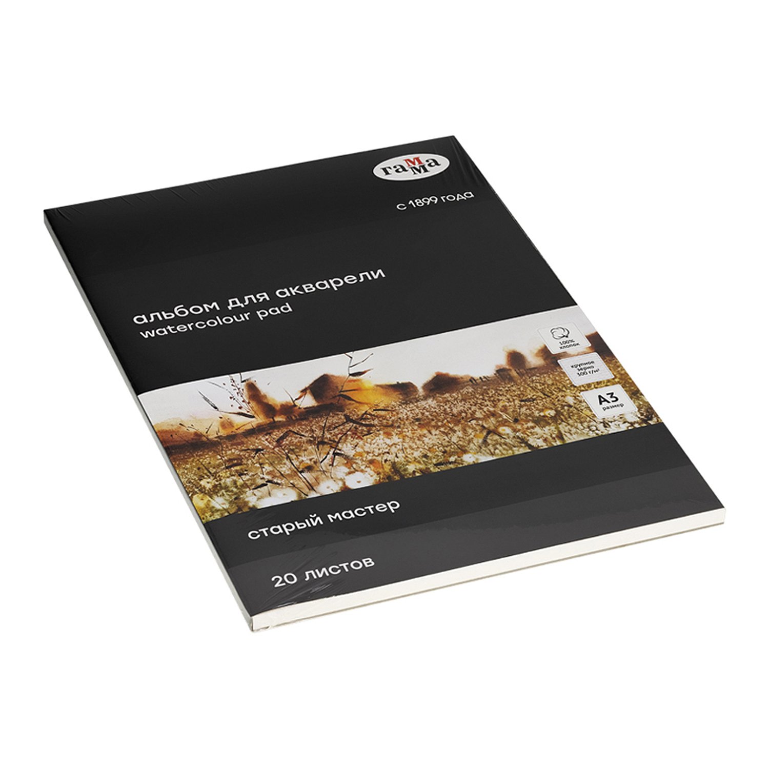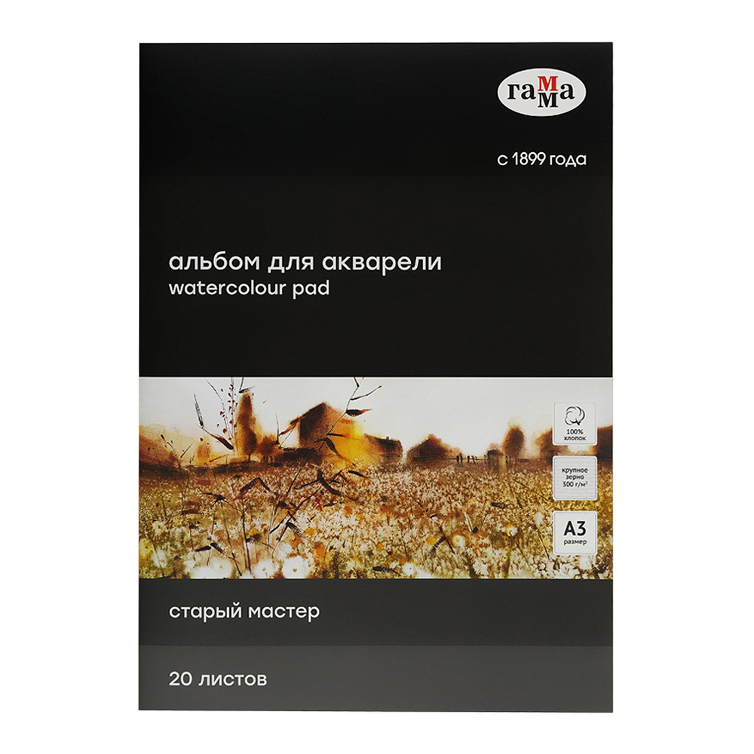 Альбом для акварели Гамма 20 листов А3 склейка с 4-х сторон Старый Мастер 300г/м2 крупное зерно 100% хлопок 332544