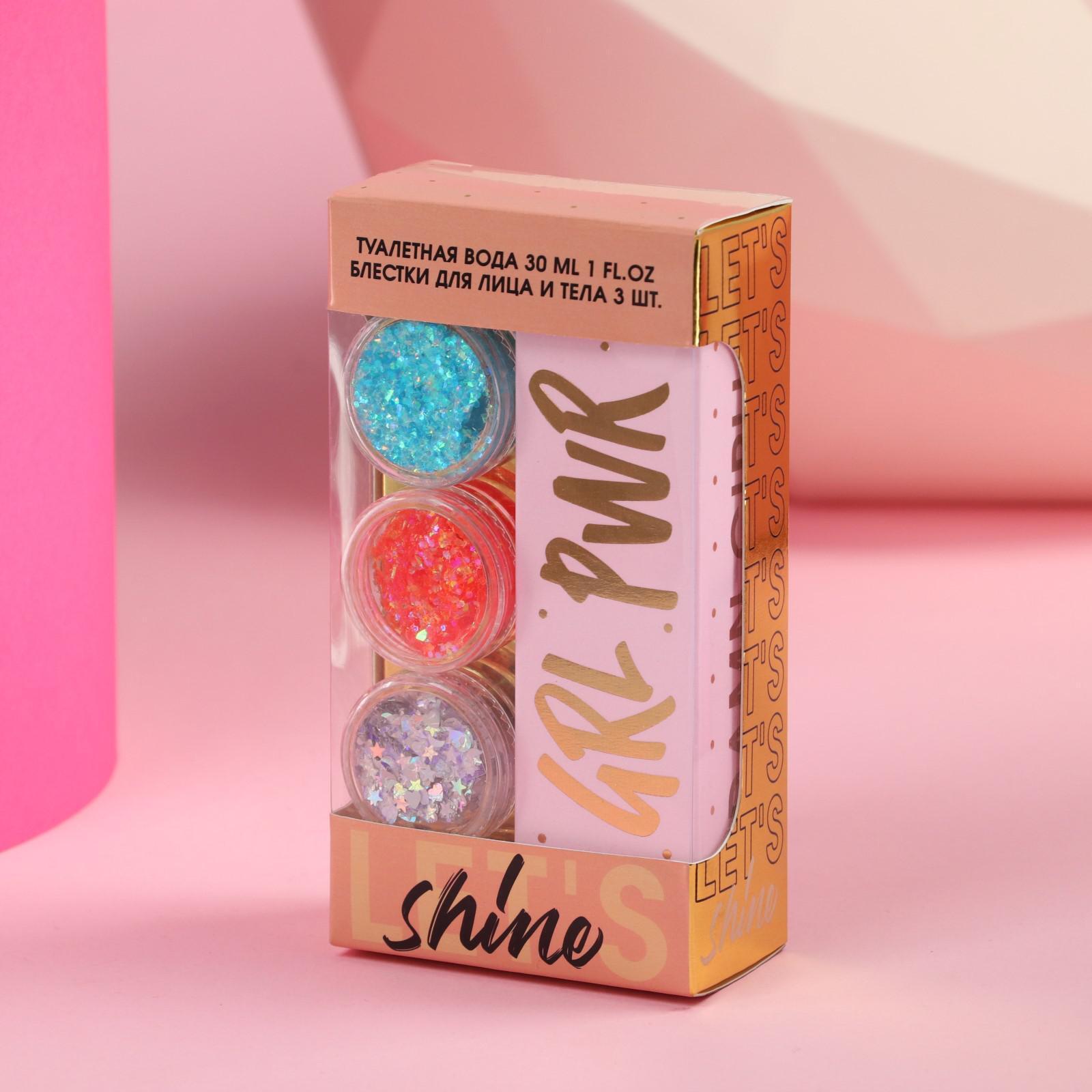 Набор «LET'S Shine»: парфюм (30 мл), глиттерные блестки для лица и тела (3 шт)