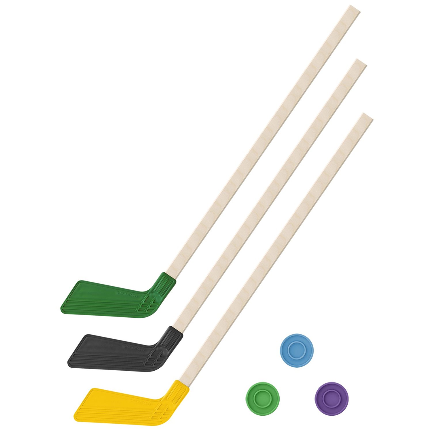 Набор для хоккея Задира 3 Клюшки 80 см + 3 шайбы КЛ2+Ш2ЗЧ+КЛ+ШЖ