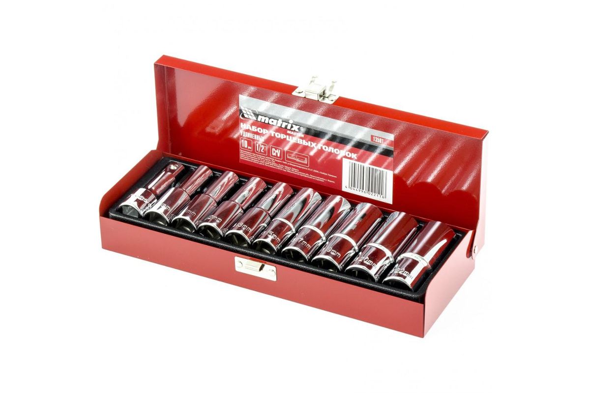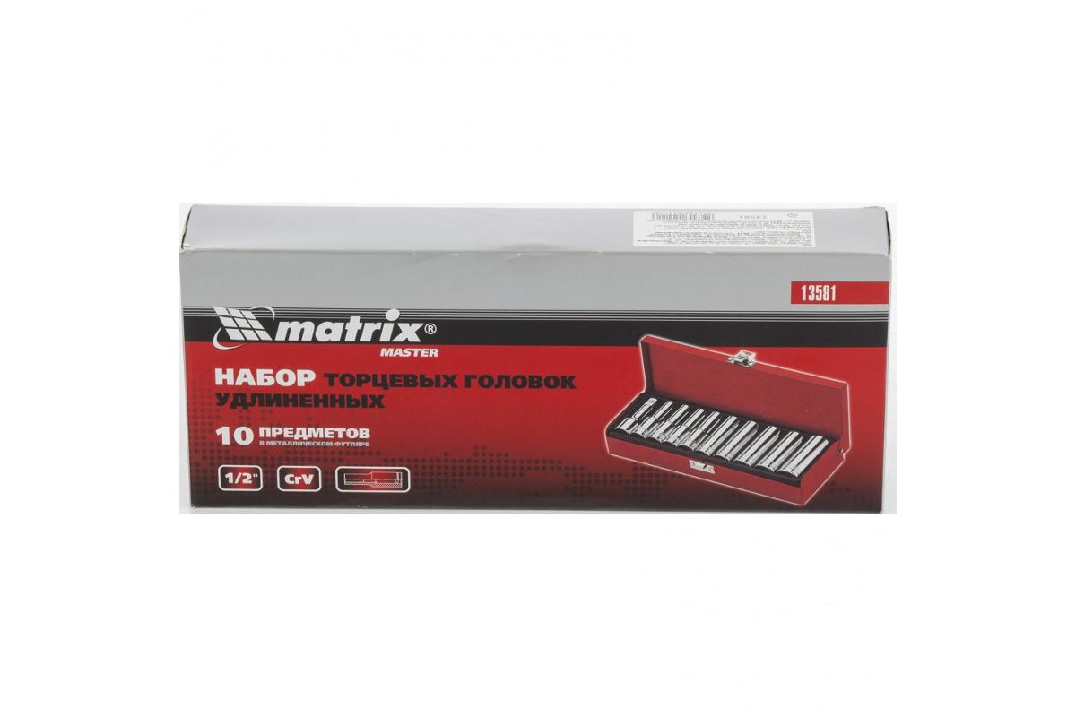 Набор головок MATRIX 13581 торцевых квадрат 1/2'' головки 10 - 22мм удлиненные 10 пр.