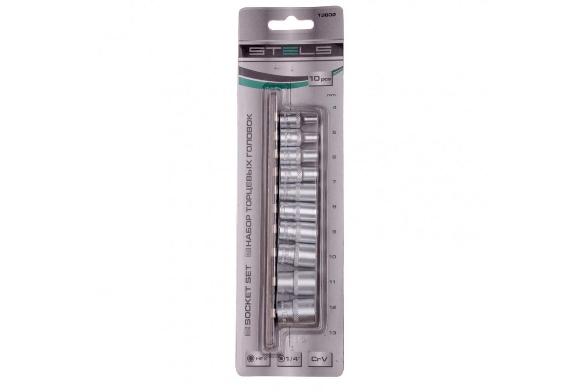 Набор торцевых головок STELS 13602 1/4 6-гранная crv 4-13мм 10шт