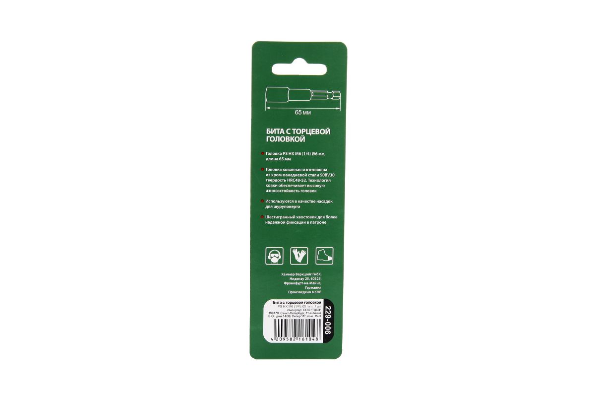 Головка Hammer Flex 229-006 PS HX M6 (1/4), 65 мм, 1шт.