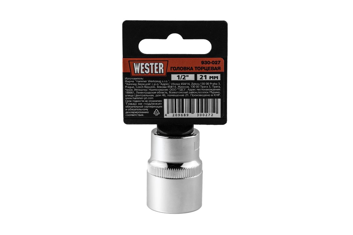 Головка торцевая WESTER размер 21мм, S 1/2'' (930-027)