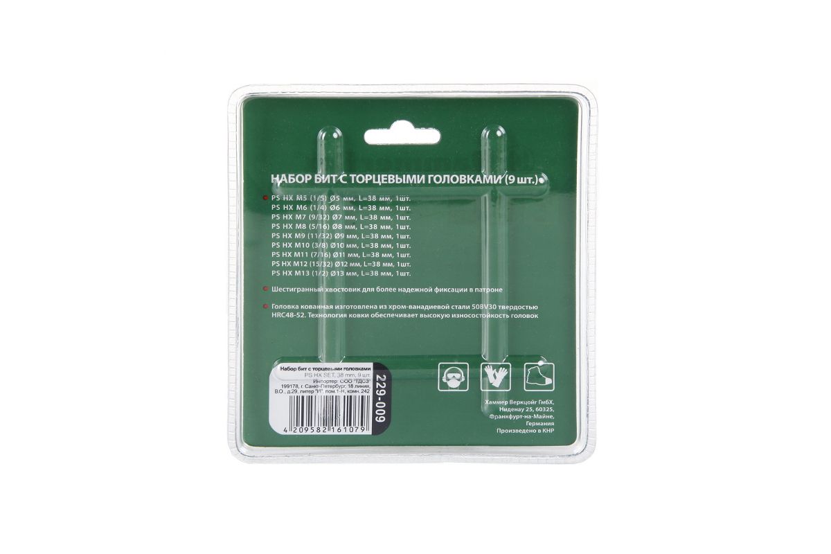 - Головка PS HX M9 (11/32) диаметр 9 мм, длина 38 мм: 1шт;