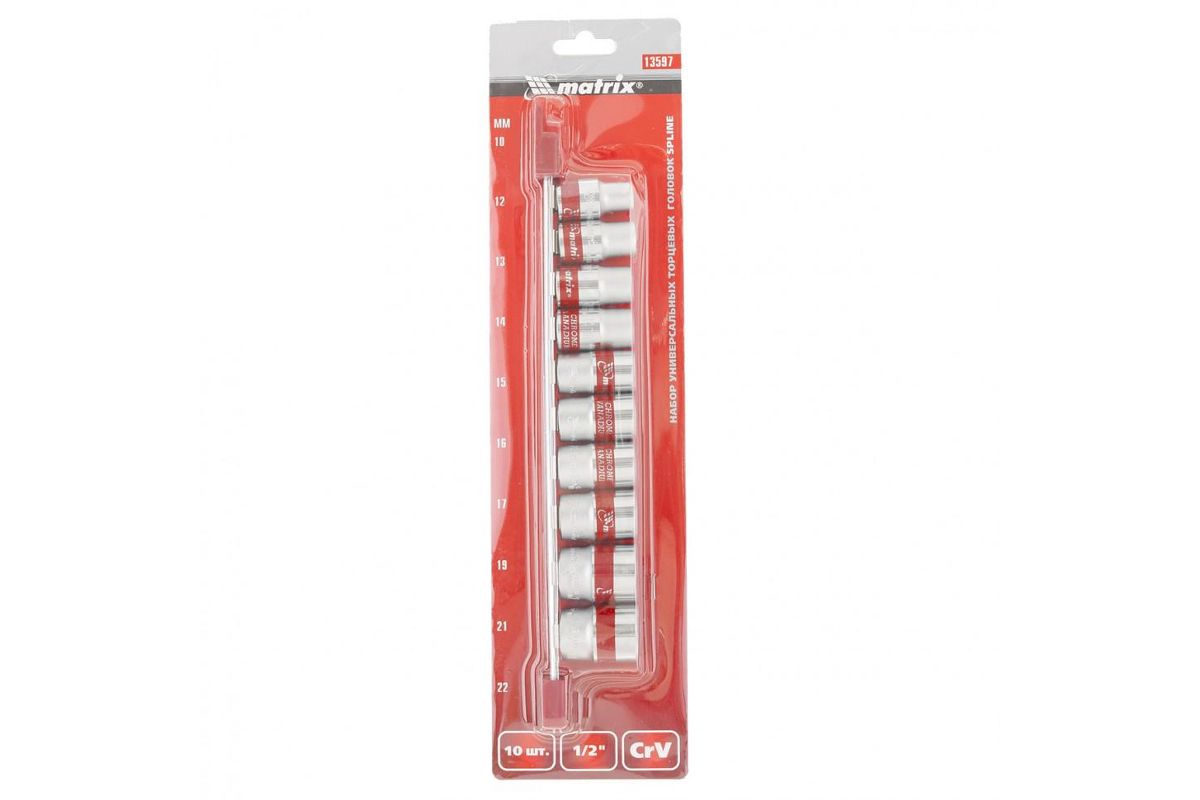 Набор головок MATRIX 13597 набор универсальных торцевых головок 1/2'' spline crv 10шт. 10-22мм