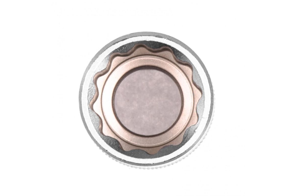 Головка предназначена для эффективного монтажа/демонтажа болтовых соединений.мГоловка сменная торцевая изготовлена из хромванадиевой стали и обладает повышенной износостойкостью. Твердость материала рабочей части головки – 42 HRс, что соответствует требованиям ГОСТа. Изделие имеет матовое хромированное покрытие. Торцевая головка имеет 12-гранный профиль с увеличенной площадью контакта с деталью, что значительно снижает деформацию граней крепежа при высоких нагрузках и позволяет осуществлять вращение крепежа с меньшим углом поворота (30 градусов) по сравнению с 6-гранным зевом.