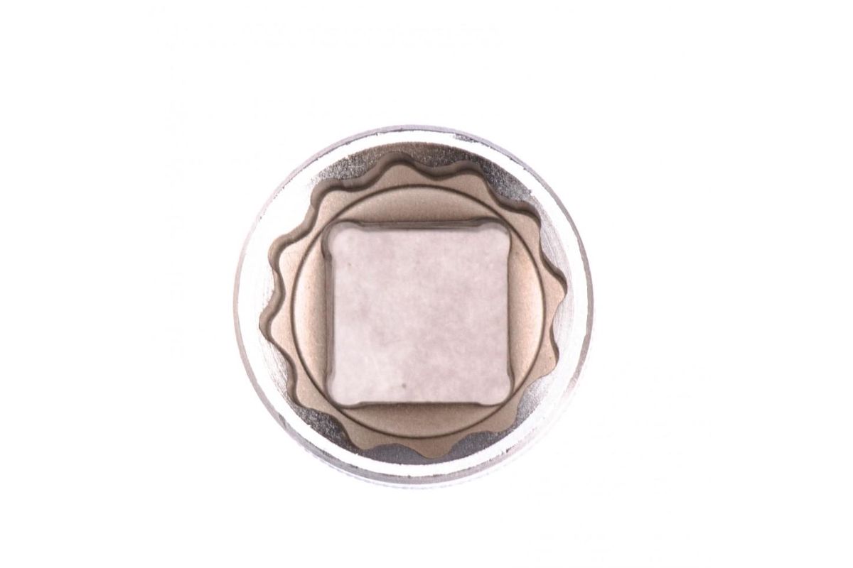 Головка предназначена для эффективного монтажа/демонтажа болтовых соединений.мГоловка сменная торцевая изготовлена из хромванадиевой стали и обладает повышенной износостойкостью. Твердость материала рабочей части головки – 42 HRс, что соответствует требованиям ГОСТа. Изделие имеет матовое хромированное покрытие. Торцевая головка имеет 12-гранный профиль с увеличенной площадью контакта с деталью, что значительно снижает деформацию граней крепежа при высоких нагрузках и позволяет осуществлять вращение крепежа с меньшим углом поворота (30 градусов) по сравнению с 6-гранным зевом.