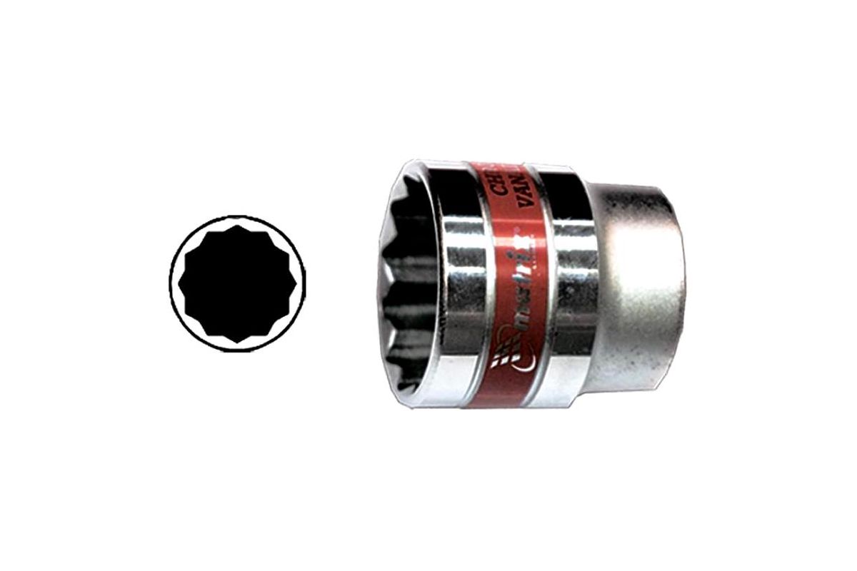 Головка сменная торцевая изготовлена из хромванадиевой стали и обладает повышенной износостойкостью. Твердость материала рабочей части головки – 42 HRс, что соответствует требованиям ГОСТа. Изделие имеет полированное хромоникелевое покрытие. Торцевая головка имеет 12-гранный профиль с увеличенной площадью контакта с деталью, что значительно снижает деформацию граней крепежа при высоких нагрузках и позволяет осуществлять вращение крепежа с меньшим углом поворота (30 градусов) по сравнению с 6-гранным зевом. Головка предназначена для эффективного монтажа демонтажа болтовых соединений.