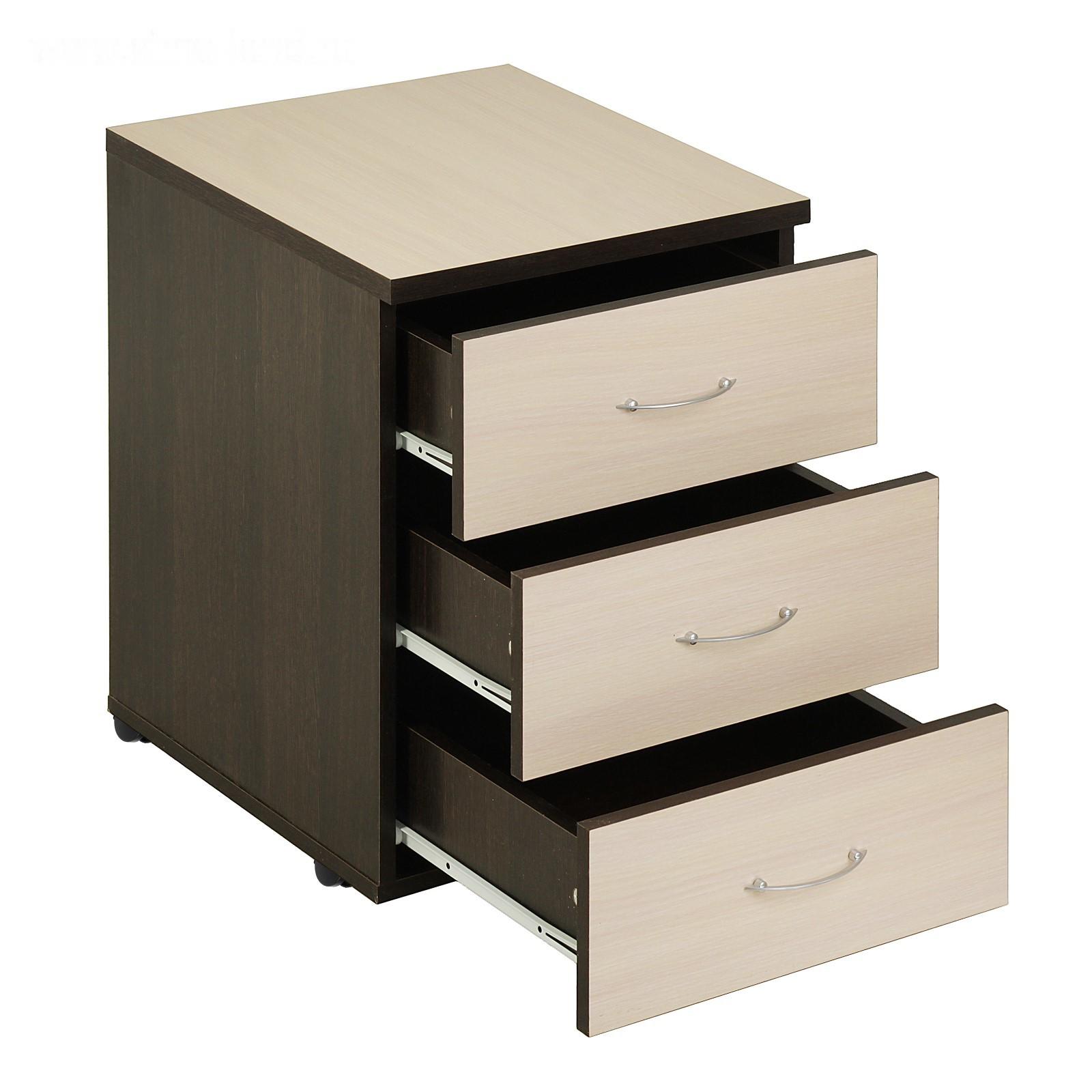 Тумба подкатная, 3 ящ. 430х450х610 Венге/Дуб, кр. Венге