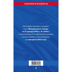 Настоящее издание содержит текст Федерального закона от 17 января 1992 года № 2202-1 «О прокуратуре Российской Федерации» с изменениями и дополнениями на 2023 год. К изменениям, вступающим в силу позднее, вместе с редакцией нормы, действующей на эту дату, приводится норма в новой редакции и указывается дата, с которой она вступает в силу.