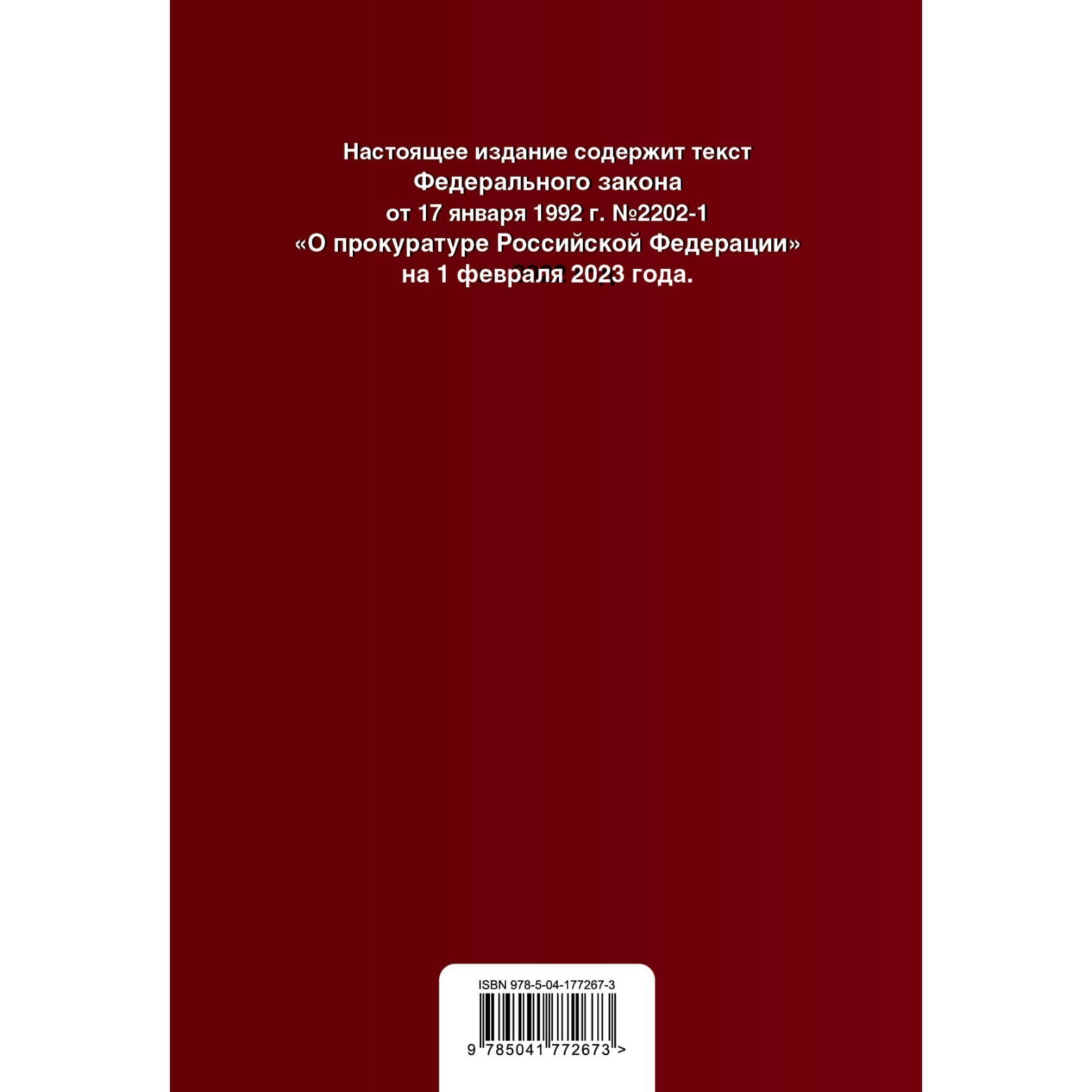 Настоящее издание содержит текст Федерального закона от 17 января 1992 года № 2202-1 «О прокуратуре Российской Федерации» с изменениями и дополнениями на 2023 год. К изменениям, вступающим в силу позднее, вместе с редакцией нормы, действующей на эту дату, приводится норма в новой редакции и указывается дата, с которой она вступает в силу.