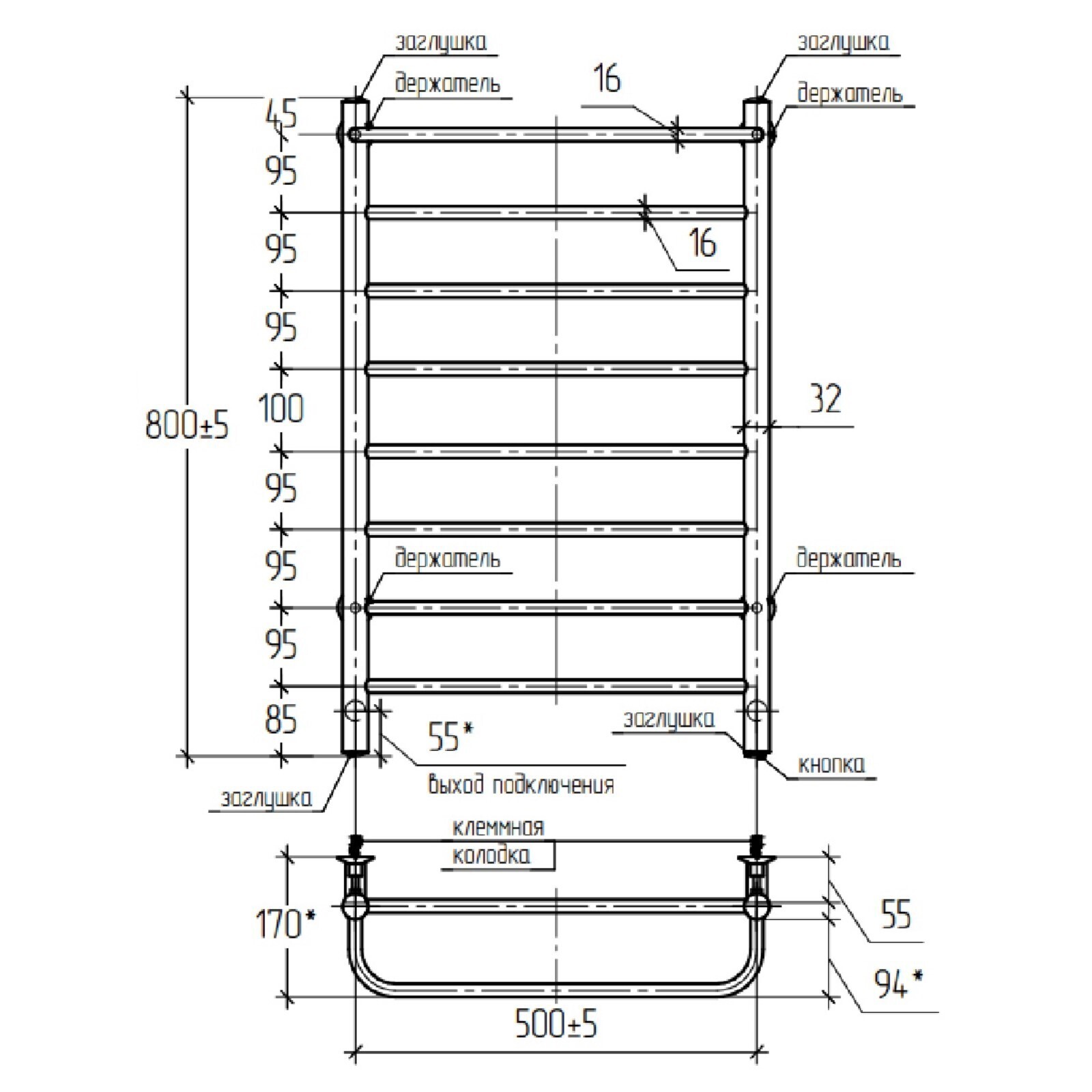 Полотенцесушитель электрический ARIS "Оазис", 500х800 мм, 8 перекладин, белый