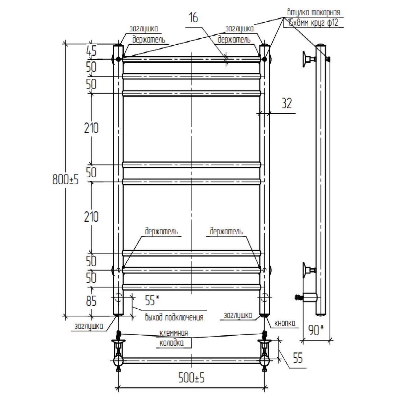 Полотенцесушитель электрический ARIS "Классика", 500х800 мм, 3+2+3 перекладины, белый